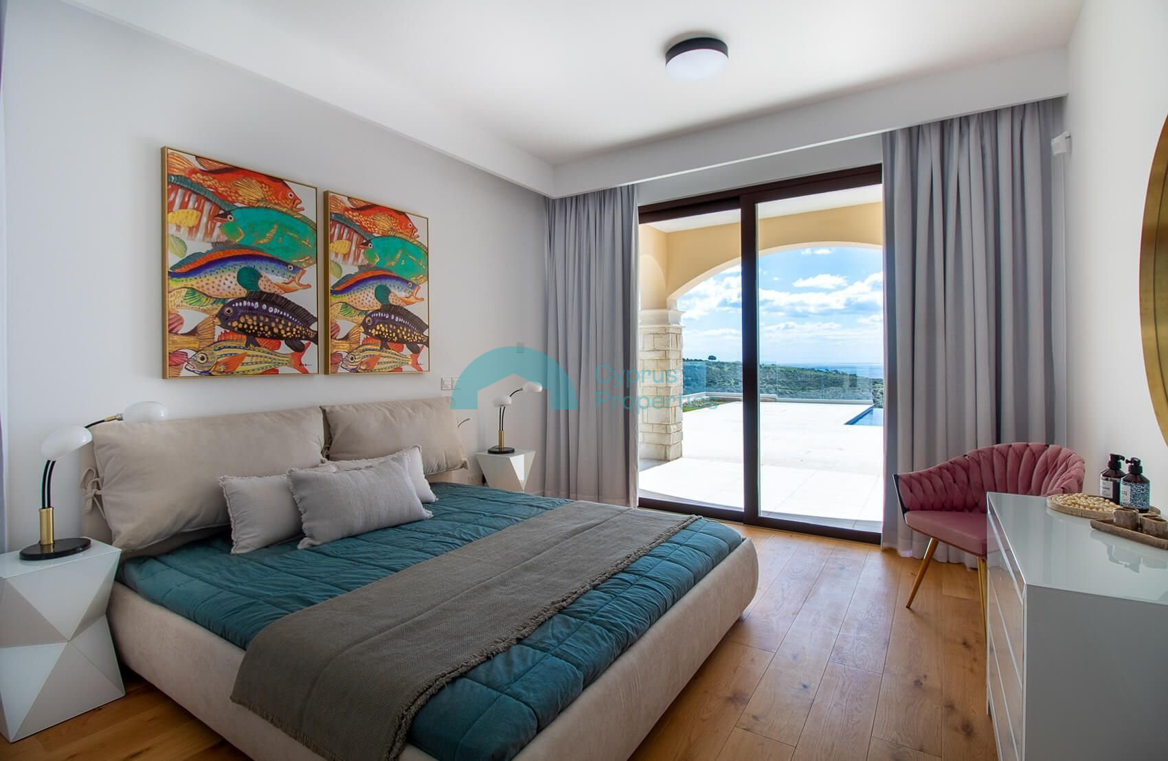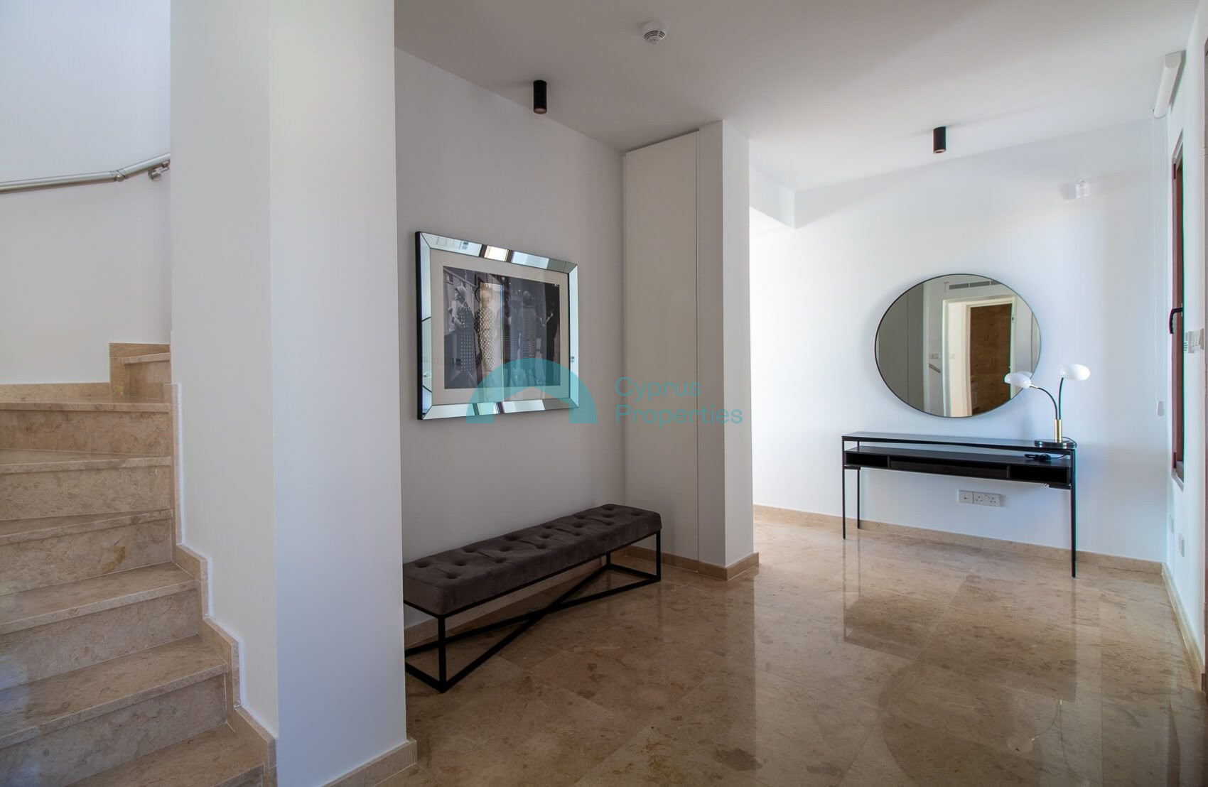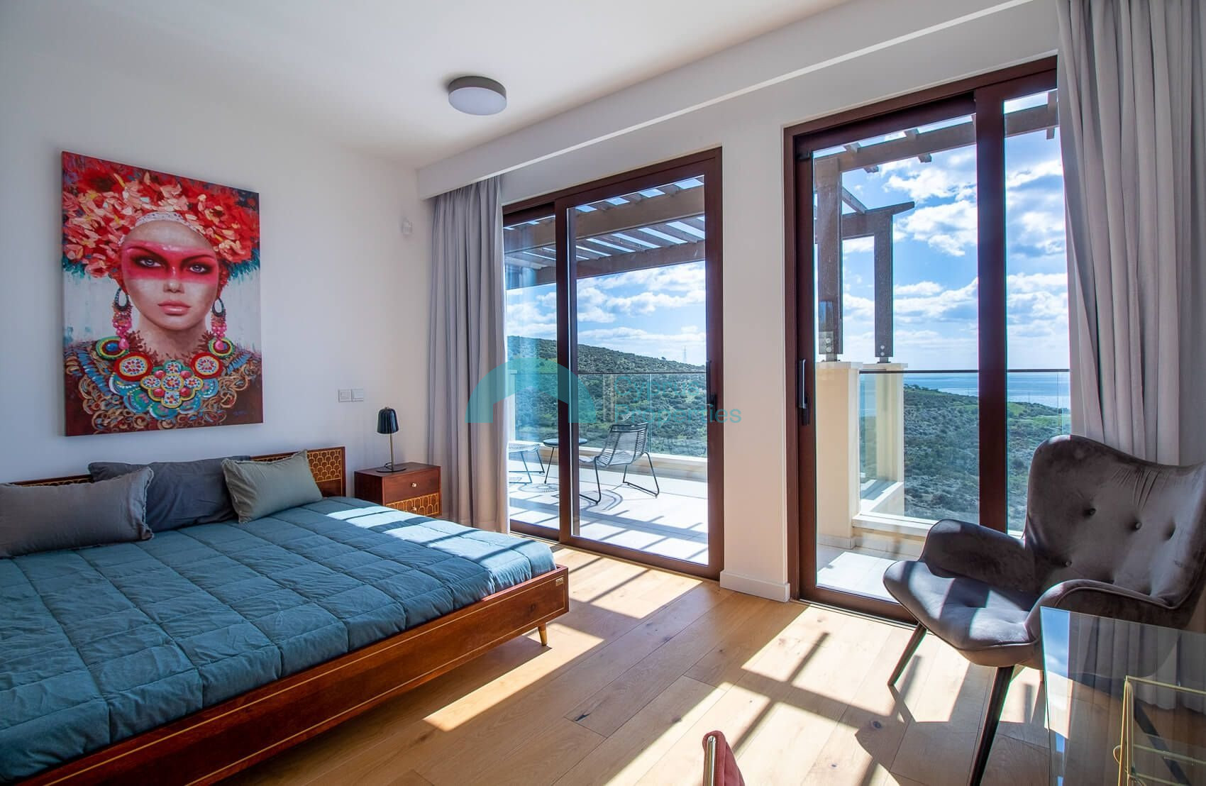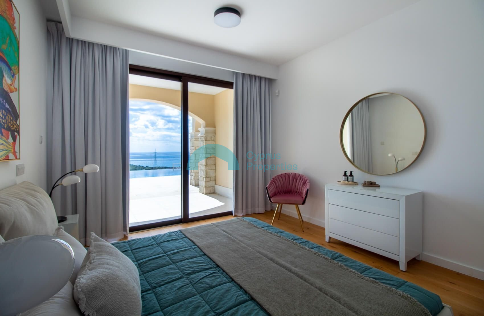 The spacious and airy first floor lobby leads to the magnificent master bedroom with panoramic glass doors opening on to a large terrace with unparalleled views of the Mediterranean and magnificent sunrise and sunset views over the horizon.