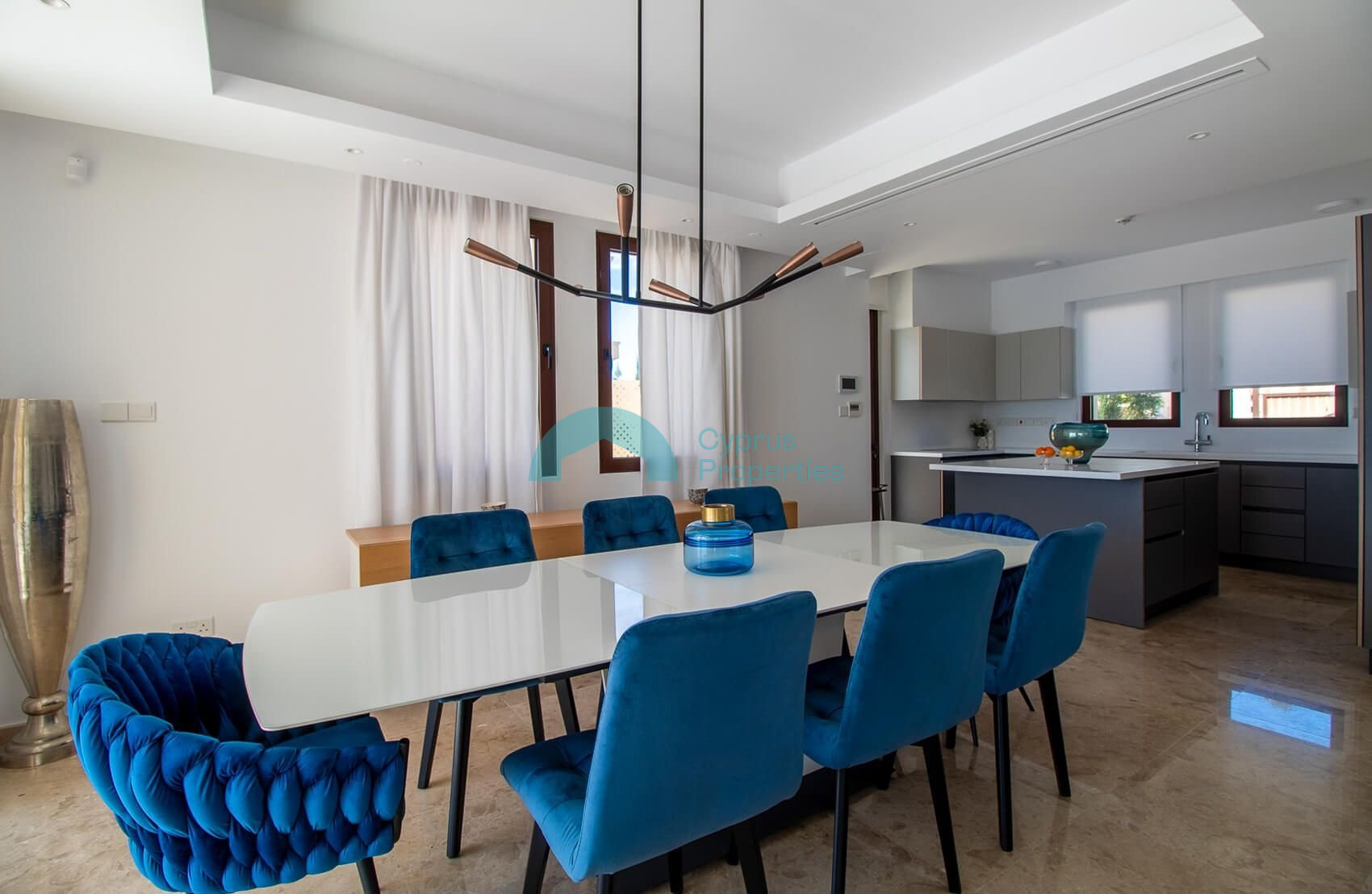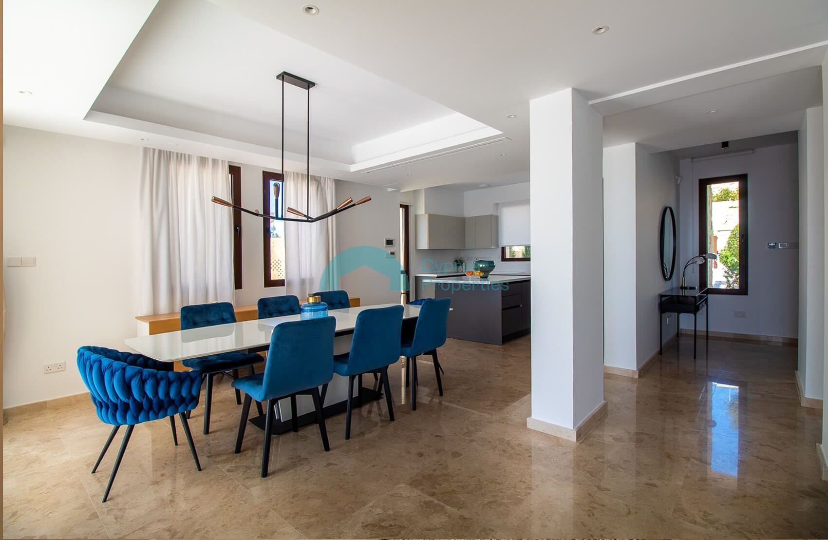 The property feature 5m x 10m infinity edge swimming pool, high quality Italian-style kitchen and integrated, stainless steel-finish appliances, along with Crema Tea Marble shower rooms and marble or parquet flooring throughout.