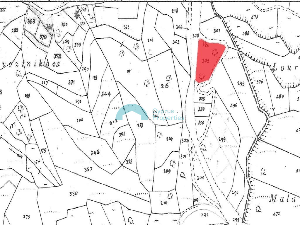 Residential field in the community of Agios Amvrosios in the Limassol district. It is located approximately 900 meters southeast of the community center and approximately 750 meters northwest of the Chapel of the Holy Cross. Residential field in the community of Agios Amvrosios in the Limassol district. It is located approximately 900 meters southeast of the community center and approximately 750 meters northwest of the Chapel of the Holy Cross. It has an irregular shape with a sloping ground surface, abutting the connecting road between Agios Amvrosios and Panos Kivides on its western border and with a registered dirt road on its northern and eastern boundary. The property falls within the Residential Zone Η5, having a building density of 20%.