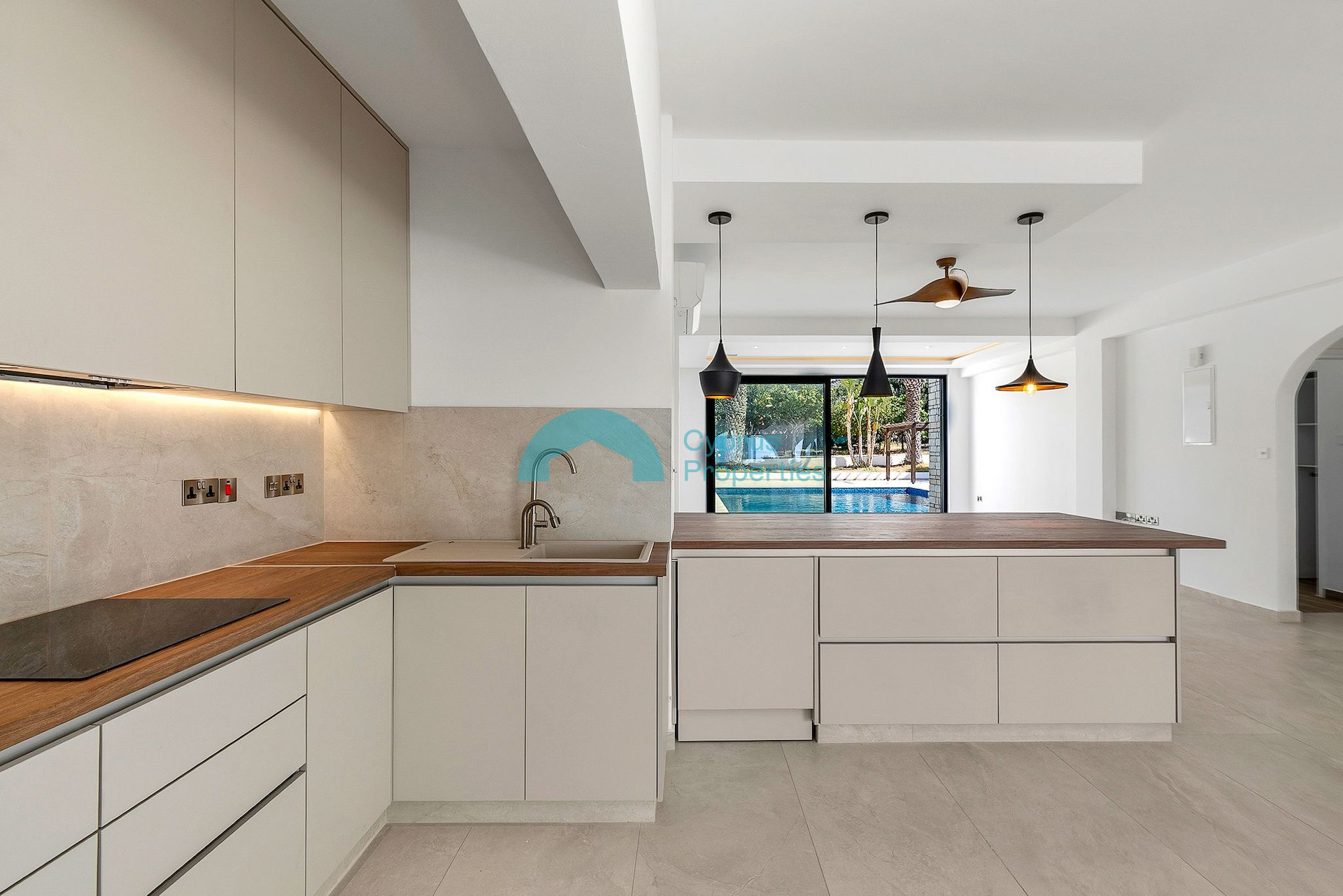 Offered unfurnished, the villa gives you the flexibility to create your ideal home. Ideally located near a traditional Greek taverna and just minutes from Coral Bay’s beaches, restaurants, and shops, it’s a perfect choice for a peaceful yet well-connected lifestyle. • Large square private swimming pool