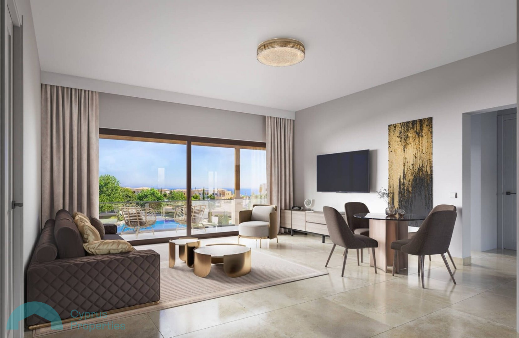 Three bedroom ground floor apartment with large garden and communal swimming pools. Conveniently situated in the centre of all amenities, Dionysus Greens is one of the most privileged developments of Aphrodite Hills Resort. Due to its prime location and state-of-the-art features and finishes, this project offers the highest level of the Mediterranean lifestyle. Dionysus Greens is located right next to the PGA National Cyprus Golf Course and is within walking distance to the Resort’s facilities which include the Tennis and Football Academies, PGA National Golf Course, the Retreat Spa plus numerous bars, restaurants and shops. The perfect location for a perfect property.