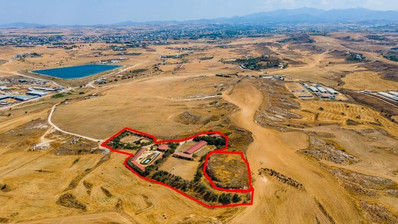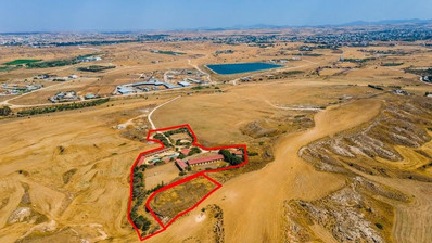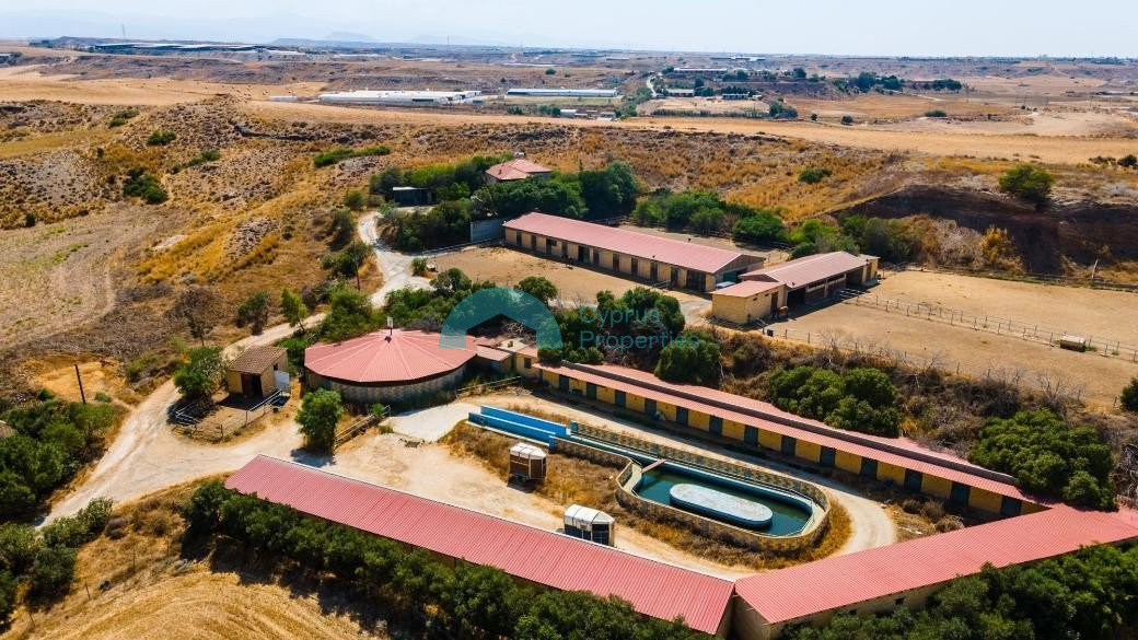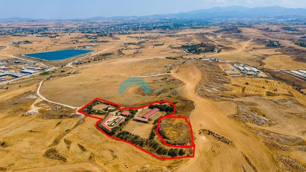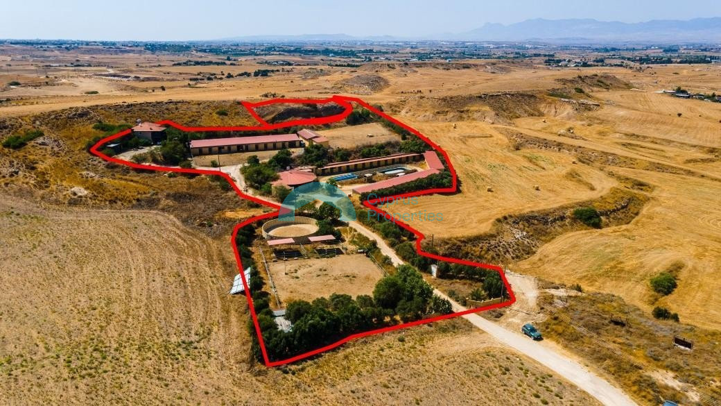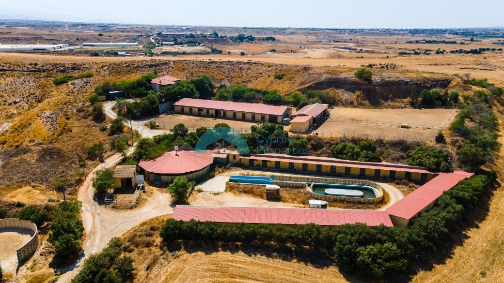 The property consists of two fields in Pano Deftera. It is located 1,2km from Agioi Trimithias avenue and lies 4,4km from 'Grammar School'. The fields have a total land area of 18,517sqm. It abuts onto a registered road that ends at its southeastern boundary. Within the fields, there is a horse stud breeding farm, auxiliary premises and a residence. The house consists of a living room, dining area, one-bedroom with a bathroom, and a covered veranda. It has a total covered area of 175sqm and 48sqm covered verandas. The total covered area for stables and other auxiliary premises is 1,240sqm. The stables were constructed in 1995, whereas the house in 2000 and the upper floor in 2010.