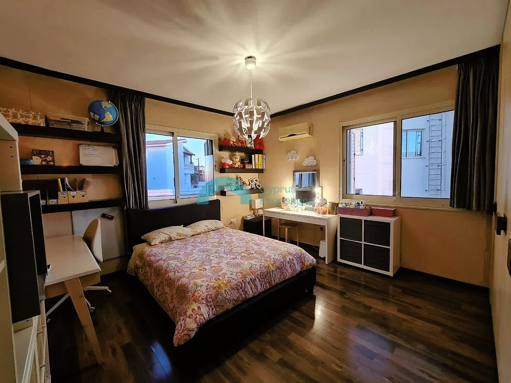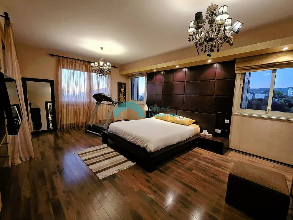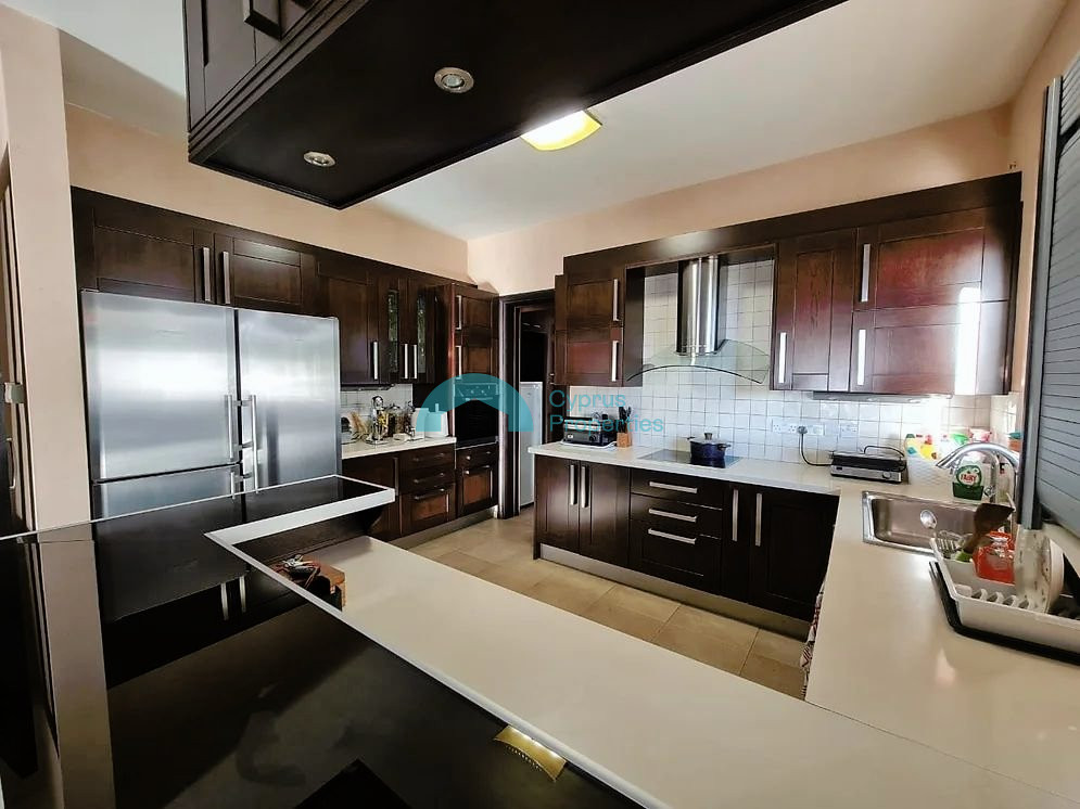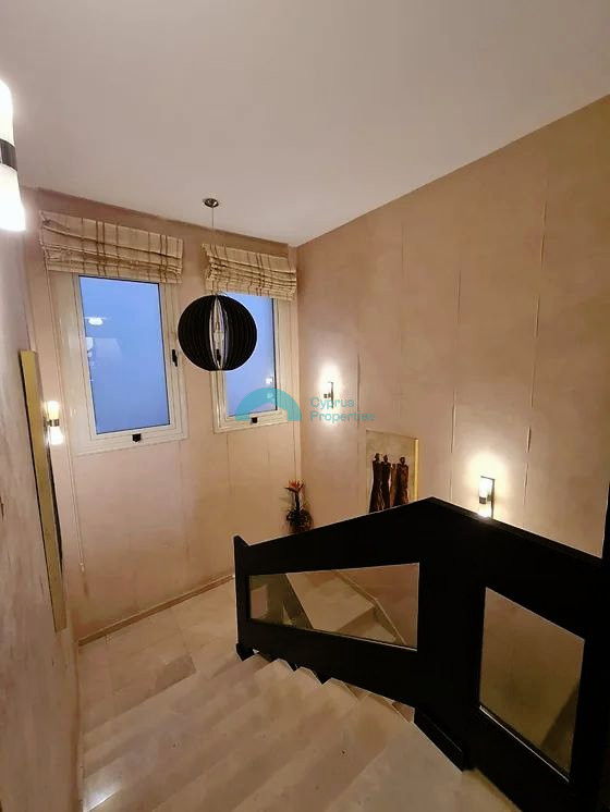 This modern property is offered fully-furnished with quality furniture and consists of: large gym/games room, a storage room and maid’s room with shower/WC all in basement; on the ground floor is the sitting / dining room, a study, separate spacious kitchen / dining / sitting area with fireplace and breakfast bar, a laundry room, guest WC and large veranda by the pool area; on the first floor are 4 double bedrooms with parquet flooring, the two with access to a common big balcony, a family athroonm and a study area with mini-kitchen on the landing. The master bedroom has en suite facilities and a dressing room.