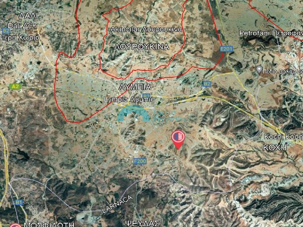 Agricultural field in Lympia Community of Nicosia District. It is situated at a distance approximately 2.5 km southeast of the Community center and approximately 1.4 km south of the motorway Nicosia – Larnaca. Agricultural field in Lympia Community of Nicosia District. It is situated at a distance approximately 2.5 km southeast of the Community center and approximately 1.4 km south of the motorway Nicosia – Larnaca. It has an irregular shape and a slopy surface. The property is landlocked but it is of close proximity to the nearest registered road. The property falls within the Protection Zone Δα1, having a building density of 0.5%. The asset does not qualify for the 50% reduction of property transfer fees imposed or levied by the Department of Lands and Surveys (Fees and Charges) Law (Cap.219). The asset does not qualify for the 50% reduction of property transfer fees imposed or levied by the Department of Lands and Surveys (Fees and Charges) Law (Cap.219).