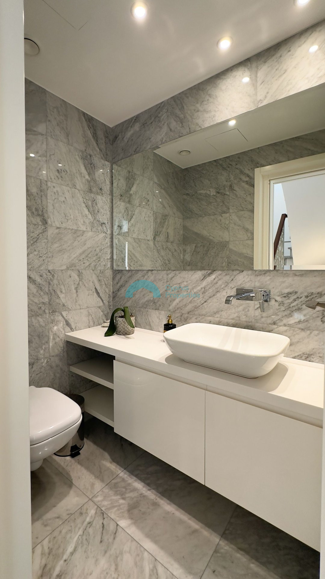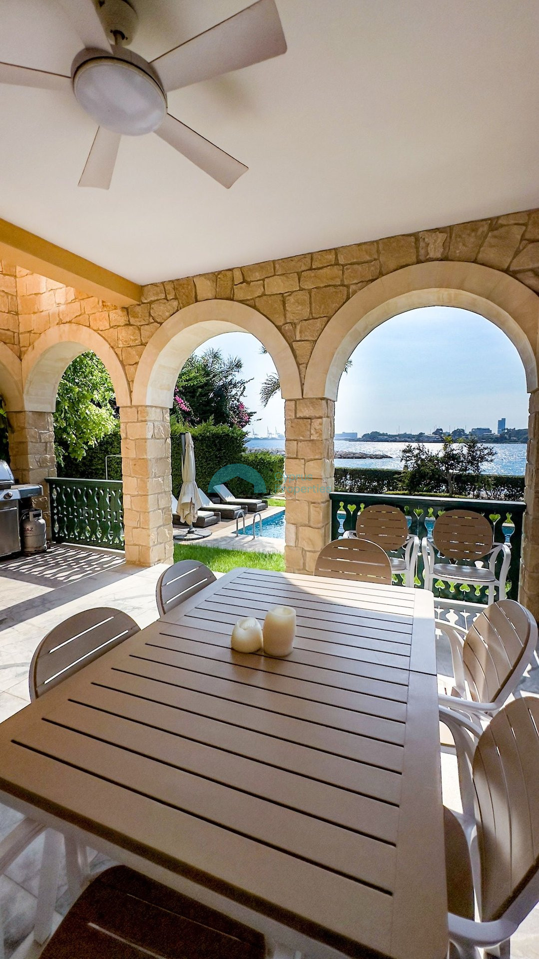 Step outside to your private landscaped garden, where a stunning swimming pool and lounge area overlook the crystal-clear waters of the Mediterranean. The outdoor space is designed for entertaining and relaxing, whether you're enjoying al fresco dining, soaking up the sun, or unwinding to the sounds of the sea.