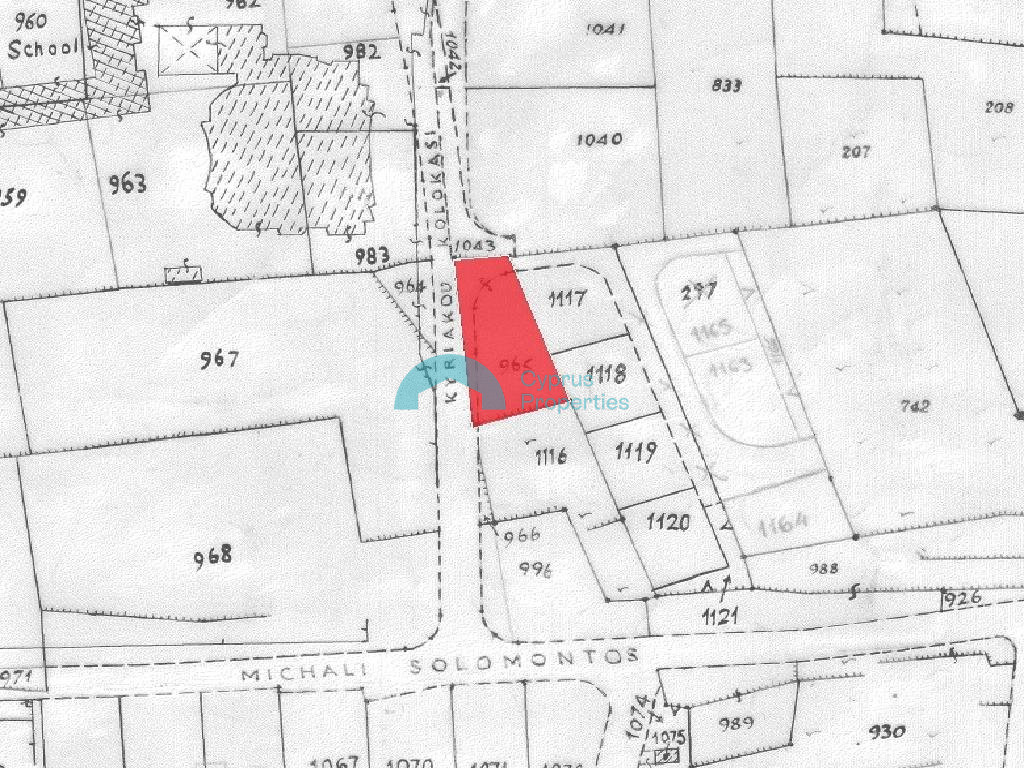 Under division residential plot, in Panagia Evaggelistrias Quarter, Dali municipality of Nicosia district. It is situated approximately 1km. southeastern of the municipality center and approximately 40 meters eastern of Dali Lyceum. Under division residential plot, in Panagia Evaggelistrias Quarter, Dali municipality of Nicosia district. It is situated approximately 1km. southeastern of the municipality center and approximately 40 meters eastern of Dali Lyceum. The property it is ideally situated close to a plethora of amenities and services such as schools, banks, supermarkets, shops etc. It is noted that the property has a corner location. Specifically, it is a corner plot with plot no. 965 which corresponds to the 1/2 share of the field. It is noted that the property has a distribution agreement and the share for sale concerns the northern part of the property shown in red (Section A) with a net land area is approximately 380sqm. It is noted that the separation works have been completed. The property falls within the Residential Zone Κα6, having a building density of 90%.