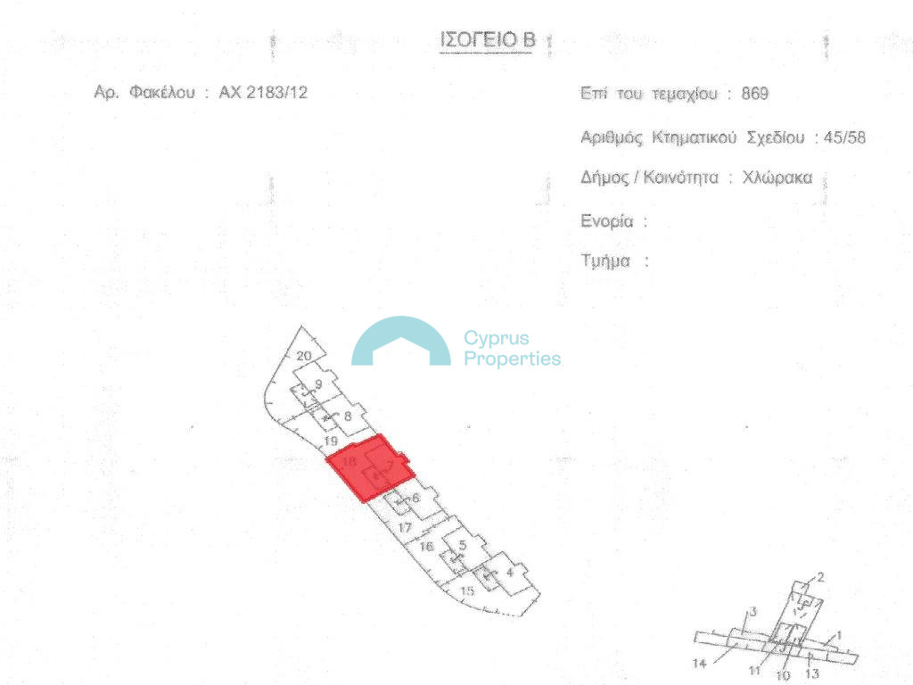Detached two-storey house in Chloraka Community, Paphos District. It is located at a distance of 480 meters (approx.) east of the main road which connects Paphos Municipality with Pegeia Municipality, 340 meters (approx.) west of Chlorakas Community Stadium and 3,4 kilometers (approx.) southwest of Paphos - Nicosia highway (A6). The property abuts onto Magnisias street (no.Z3). Detached two-storey house in Chloraka Community, Paphos District. It is located at a distance of 480 meters (approx.) east of the main road which connects Paphos Municipality with Pegeia Municipality, 340 meters (approx.) west of Chlorakas Community Stadium and 3,4 kilometers (approx.) southwest of Paphos - Nicosia highway (A6). The property abuts onto Magnisias street (no.Z3). The property is situated close to a plethora of amenities and services such as supermarkets, schools, restaurants, cafes etc. It enjoys excellent access to the motorway and the neighboring municipalities and communities. The house with door number Z3 (No. 7) is located on ground floor of a residential complex called “Nerina Sunset" which was built in the year 2001. The ground floor consists of a living room/kitchen as an open space, guest toilet, covered and uncovered veranda. The first floor consists of three bedrooms, bathroom with WC and verandas. The area of the internal spaces is 110 sqm (approx.), the covered verandas is 14 sqm (approx.) and the uncovered verandas is 10 sqm (approx.). The property is vacant and it is suitable for private use or for rental use with a good return. Way of Transfer: Assignment of contract The property is being sold through an assignment of a contract of sale, pursuant to which all legal rights of the seller shall be transferred to the new buyer. You are informed that there is no title deed for the subject property, and the seller cannot guarantee that a title deed will be issued in relation to the subject property. You are advised to seek independent advice in advance in the event that the subject property will be purchased through financing, as such assets are not generally accepted by the banks as collaterals for the purpose of granting a loan. For the subject property, no information is available regarding any accruing payments relating to the original contract of sales and/or the developer’s obligations to erect the building based on the approved drawings and/or permits which is a prerequisite for the issuance of a separate Title Deed. The seller cannot guarantee that a title deed will and/or may be issued in relation to the subject property. The seller cannot guarantee on any additional amounts that may be owed towards the seller of the subject property pursuant to the original contract of sales.