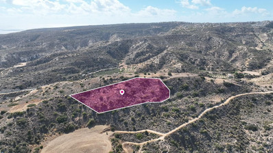 Touristic field, extending to about 5,655 sq.m., situated in Pissouri, Limassol district. The asset is located approximately 1.8km southeast Pissouri community centre, 230m east of the nearest road (Koiladon street), 2.5km south of Limassol - Paphos highway (A6) and approximately 1.2km north of the seafront. The field has an irregular shape with a sloping surface towards the southeast, situated on the top of a mountain. It is situated upon a hill enjoying unobstructed views towards the sea and the surrounding area. The property falls within a dual Zone Γ3(1%), with a building coefficient of 10%, coverage of 10%, and permission for 2 floors (8.3m) of construction and Zone Τ4(99%), with a building coefficient of 20%, coverage of 15%, and permission for 3 floors (13.1m) of construction. There is a separate title deed for this property. GPS coordinates: 34.660574 32.719512