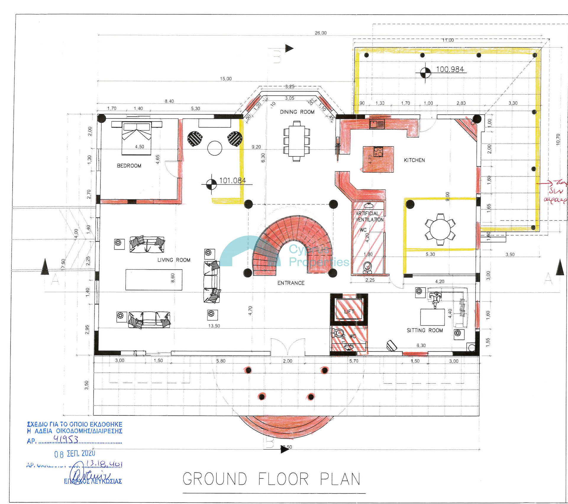 •Large Entrance with Spiral Marble Staircase leading to Upper floor and Basement