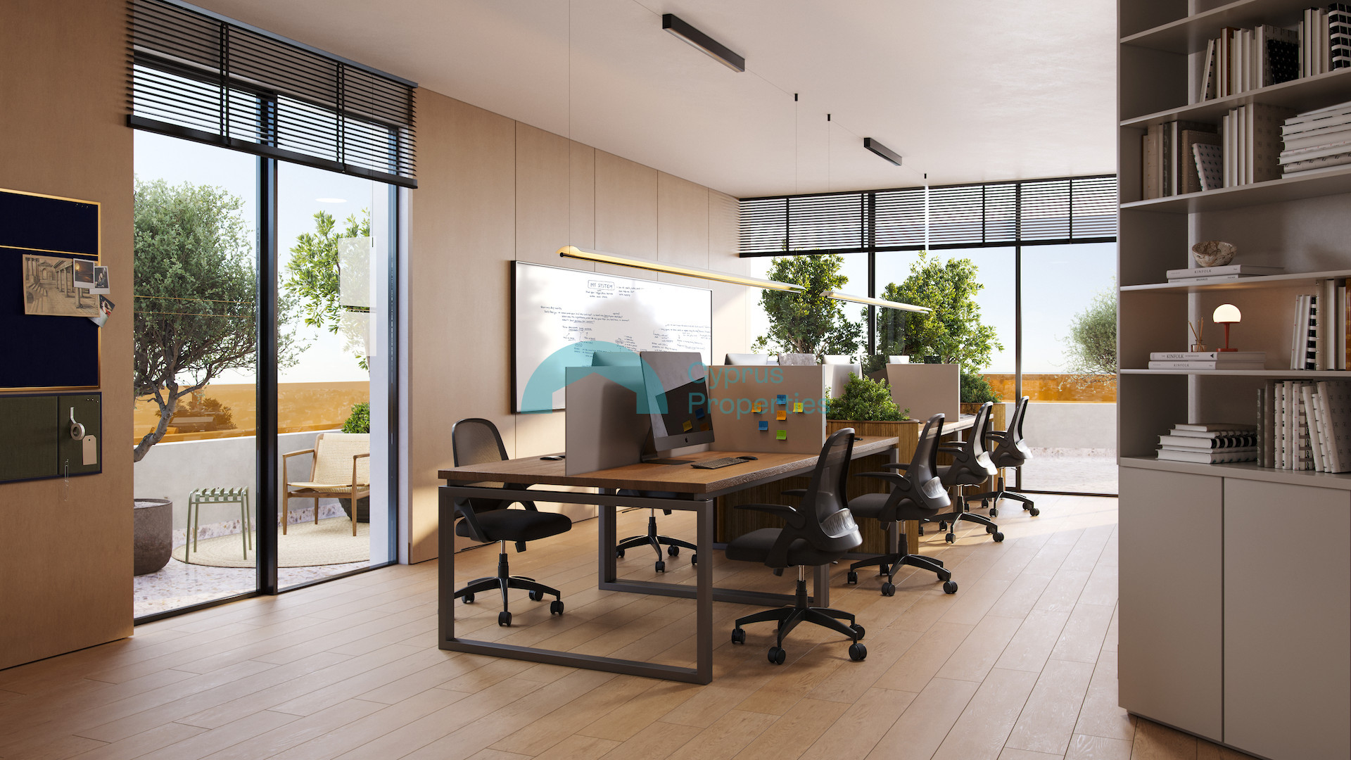 For sale: A modern ground floor office with an internal area of 94 square meters, located in the heart of Paralimni. This spacious office provides an ideal working environment, with an open layout that can be tailored to fit various business needs. Large windows allow for plenty of natural light, creating a bright and welcoming atmosphere for both employees and clients.