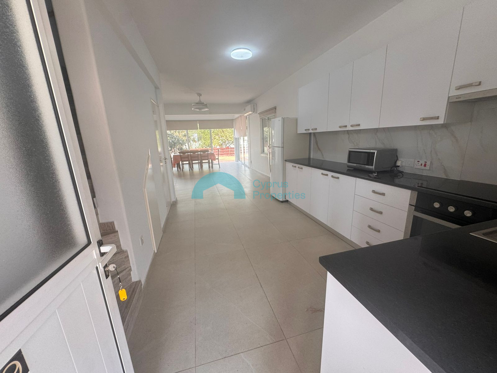 The open and airy living area is designed for both comfort and functionality. The spacious kitchen is fully equipped and ready for everyday use, while the bright living room provides a cozy space to unwind or entertain. Large windows fill the home with natural light, creating a warm and welcoming atmosphere throughout.