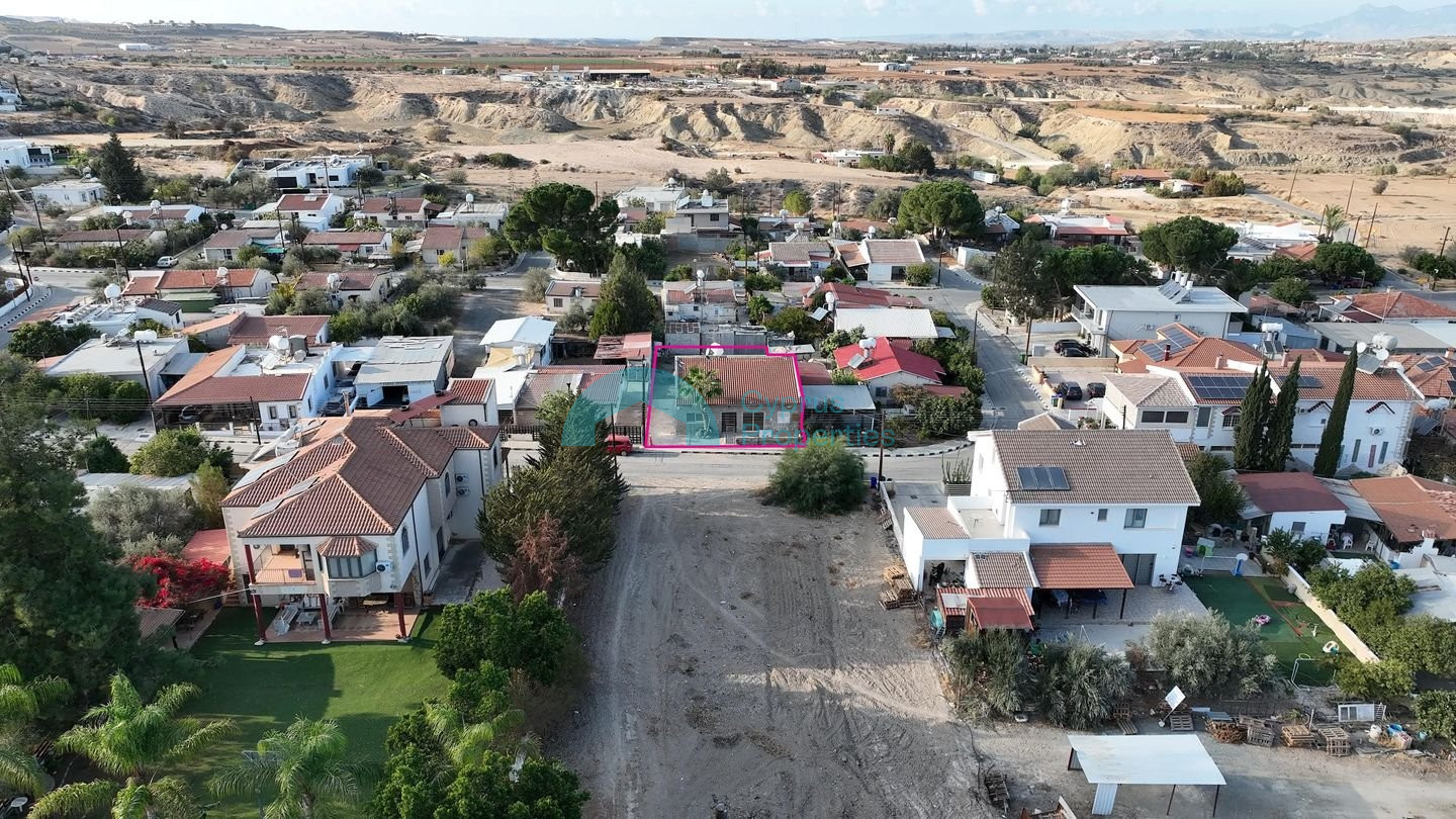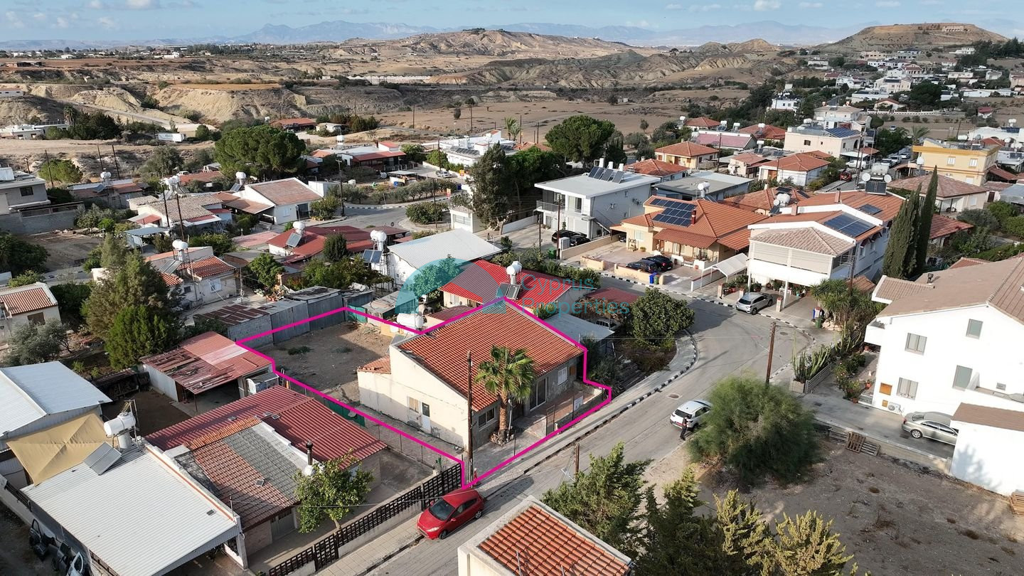 This detached ground-floor house with a mezzanine is located in the community of Arediou, within the Nicosia district. Key Features • The residence was built in 2004 • Situated on a registered plot of 437 sq.m. • Frontage of approximately 16 m. along Kapoutiou Street on its southeastern boundary. Ground Floor: Features an open-plan living room, dining area, and kitchen, one shared bathroom, and three bedrooms, including a master bedroom with en-suite shower and W/C, as well as a storage area. Mezzanine: Accessible via an internal wooden staircase, it comprises one additional bedroom and a living area. External Areas: The property includes a spacious yard and uncovered verandas Convenient Location • 170m northwest of the traditional village center • 110m west of Archbishop Makarios III Street, and • 60 m east of the B’ Peripheral Nicosia High School The property falls within Zone H2, with a building coefficient of 90 %, coverage of 50%, and permission for 2 floors (8.3m) of construction. Pending issuance of Energy Performance Certificate.