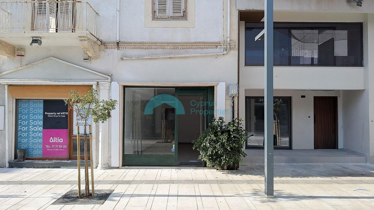 An opportunity to acquire a highly visible retail unit within a historic listed building on one of Larnaca’s most prominent commercial streets. Location: Located at the heart of a major city-centre regeneration project, this property combines historic character with prime positioning. Approx. 120 m from Ermou Square, directly opposite Kalogera Primary School,400 m from Athens Avenue, steps away from Finikoudes seafront. Κey Highlights: • Building Type: Listed Building (constructed pre-1963) with ground-floor shops and first-floor residence • Unit Details (Shop No.1): 38 sq.m enclosed space, open-plan retail area, and WC • Option to acquire adjacent property (Ref #9719) extending to 56 sq.m • Highly visible frontage on Ermou Street with constant pedestrian activity Separate Title Deed Available Energy Performance Certificate: Pending