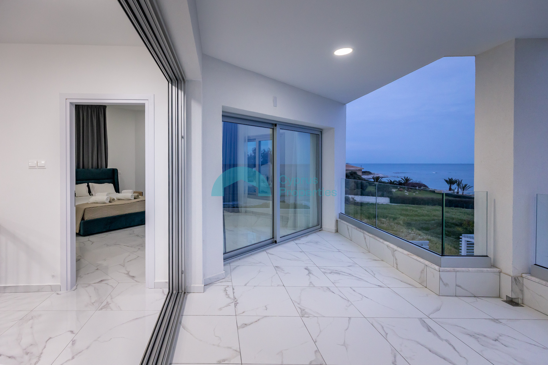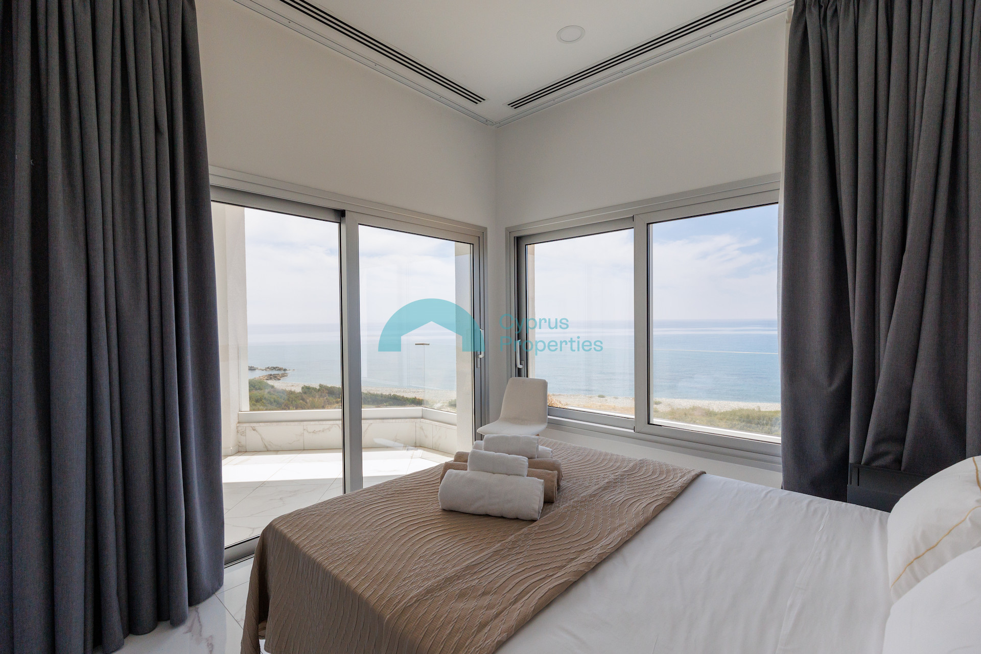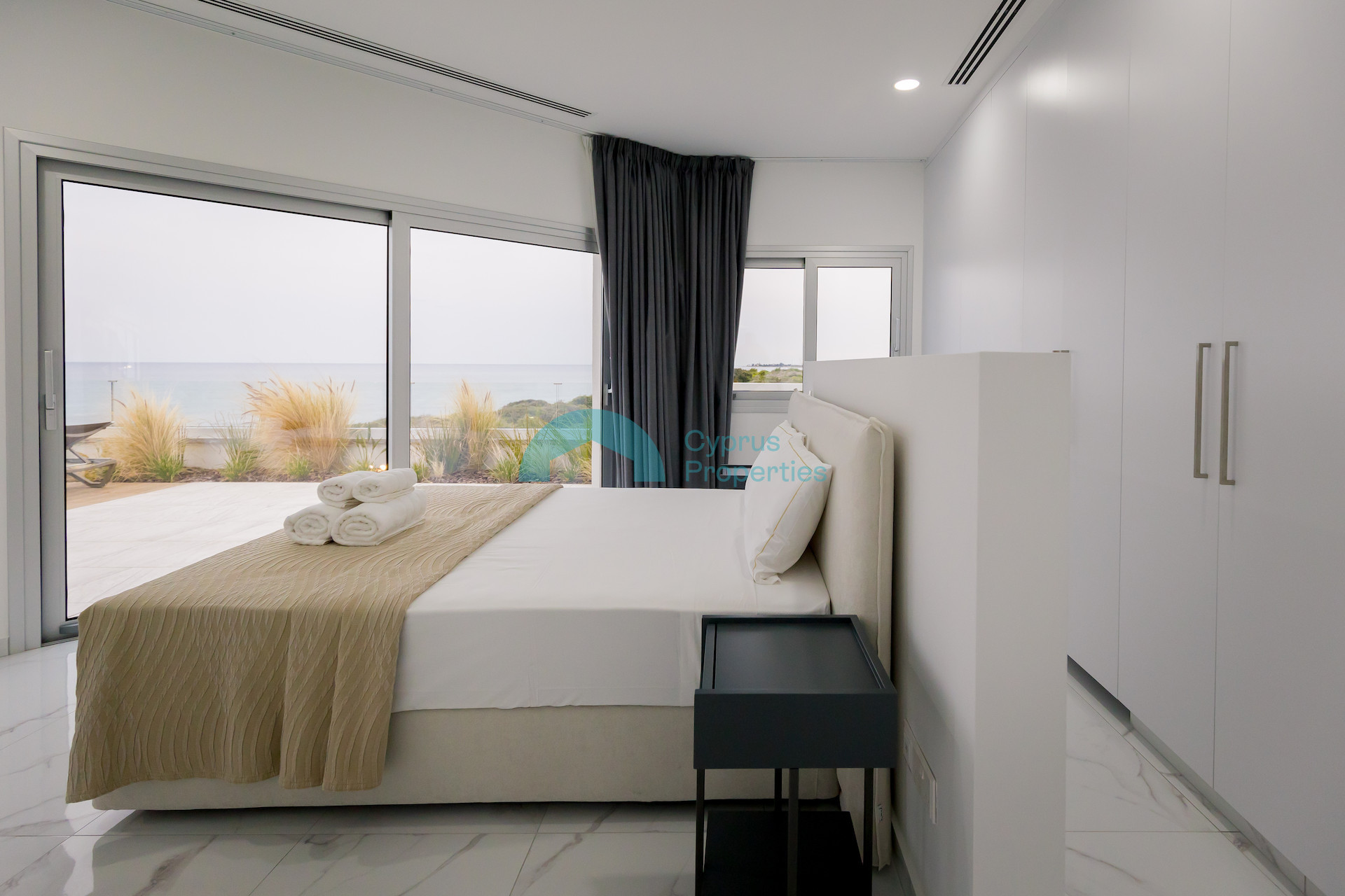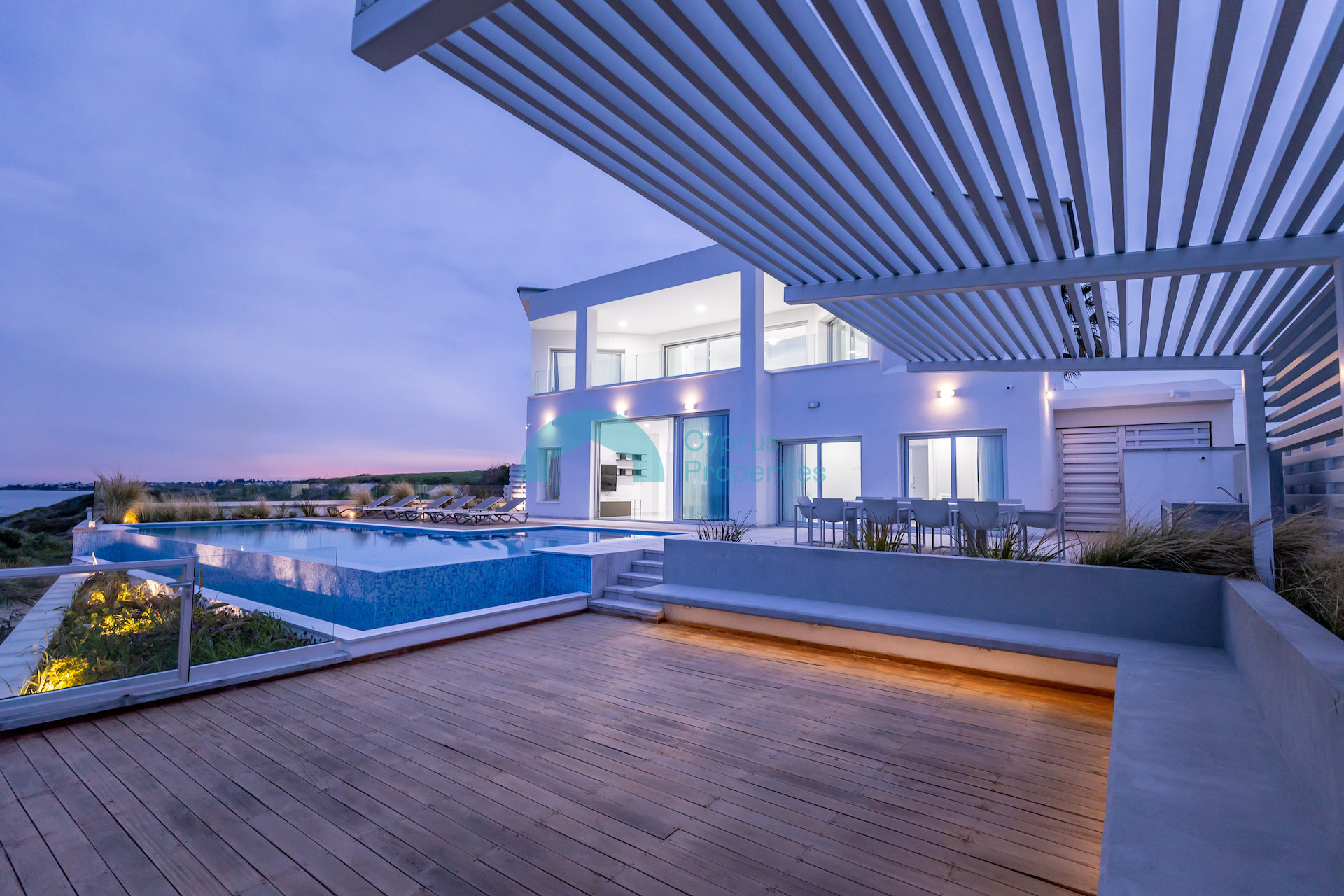 Located on the outskirts of Agios Theodoros village, the villa enjoys a prime beachfront position just 20 minutes from Larnaca International Airport and 35 minutes from Limassol city centre. The property boasts an exceptional location with unobstructed sea views, complete privacy, and all the elements of sophisticated Mediterranean living.