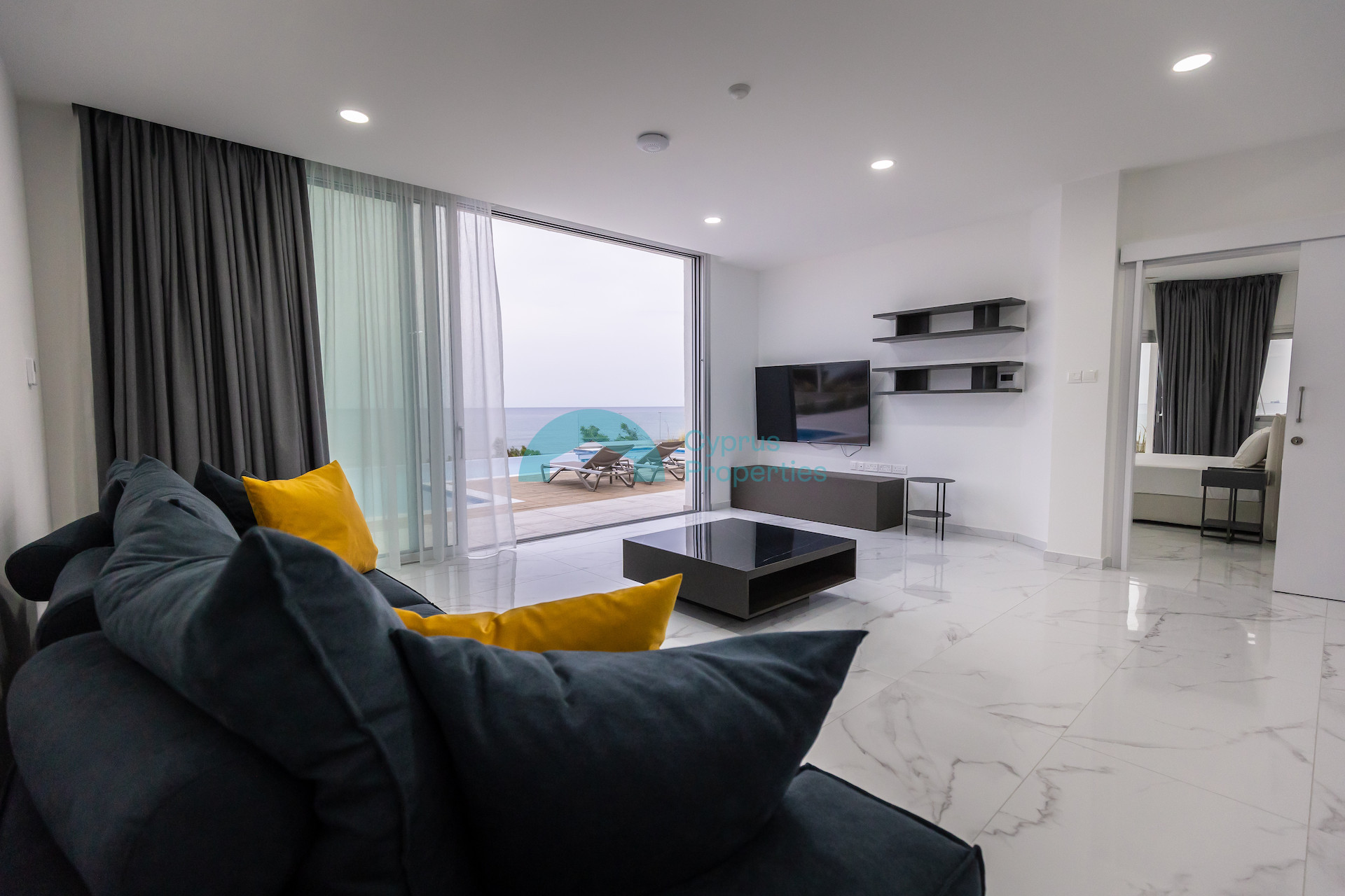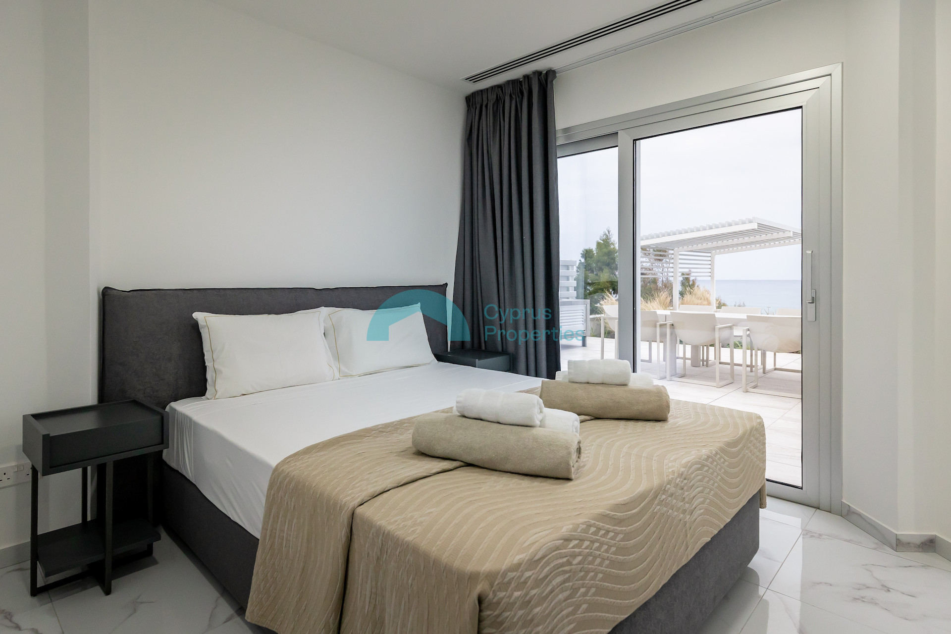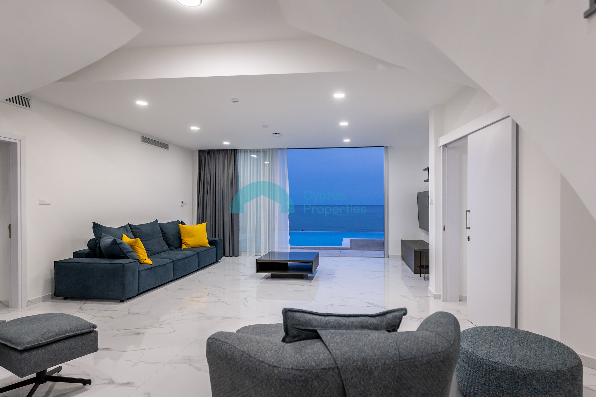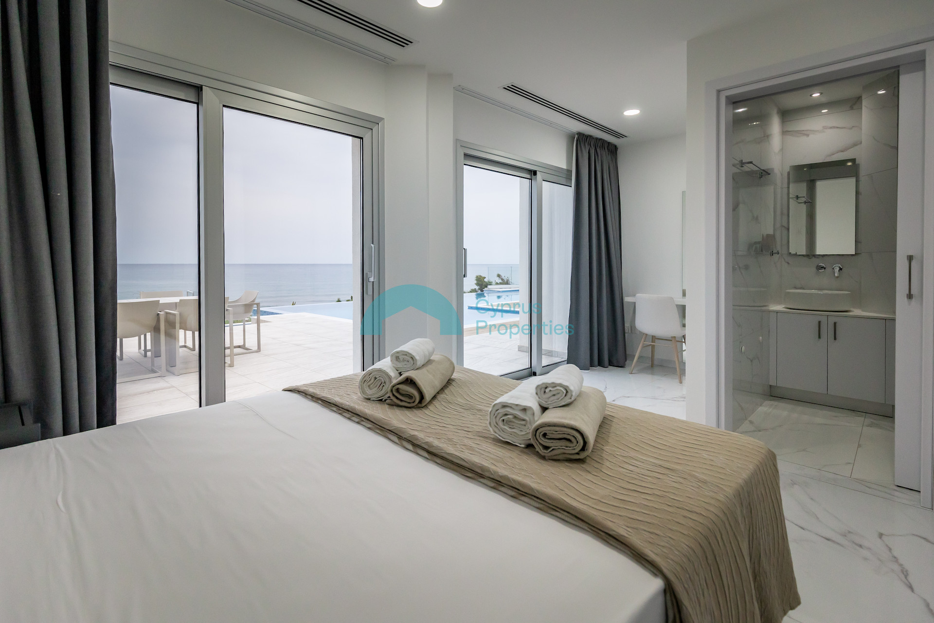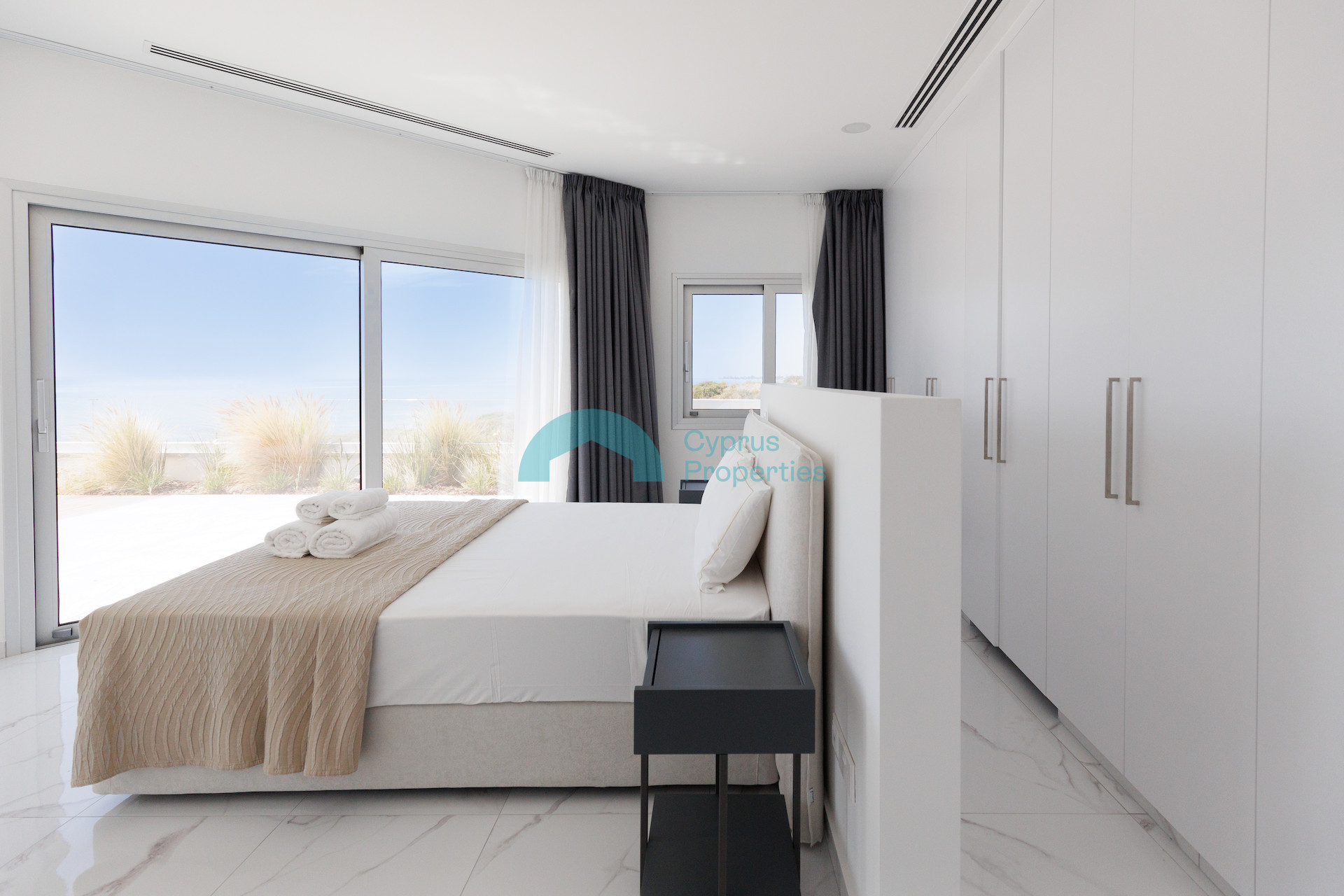 Located on the outskirts of Agios Theodoros village, the villa enjoys a prime beachfront position just 20 minutes from Larnaca International Airport and 35 minutes from Limassol city centre. The property boasts an exceptional location with unobstructed sea views, complete privacy, and all the elements of sophisticated Mediterranean living.