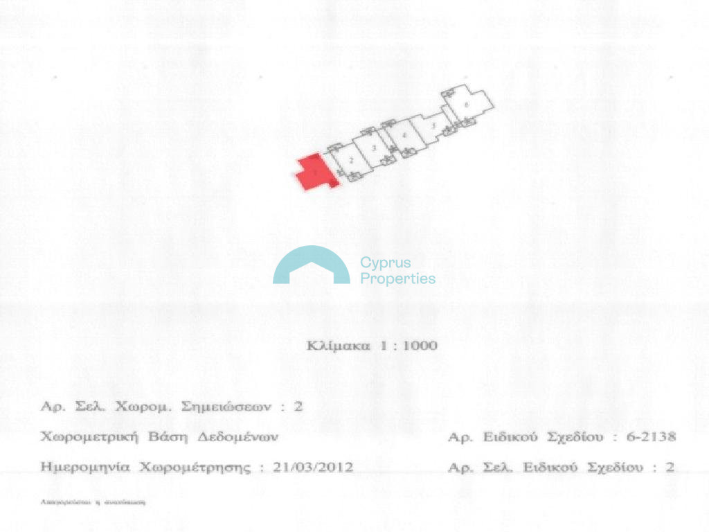 Three-bedroom apartment in the Mandria Community, Paphos District. It is located approximately 140 meters southeast of the community center and approximately 450 meters southwest of the Limassol-Paphos highway. Three-bedroom apartment in the Mandria Community, Paphos District. It is located approximately 140 meters southeast of the community center and approximately 450 meters southwest of the Limassol-Paphos highway. It is close to all necessary services and amenities and has good access to the surrounding communities and the motorway. In addition, Paphos Airport is within easy reach. The apartment was built around 2009 and is part of the "Mandria Village A" (Block A) development. The apartment with door no. 11 (No. 1) is located on the 1st floor and consists of a living room/kitchen/dining room as an open plan space, three bedrooms, a bathroom with toilet, a guest toilet, and two covered verandas. The property has a parking space (No. 6) on the ground floor. The interior area is 88 sq.m. and the covered verandas are 12 sq.m.. The apartment has a separate title deed. The apartment is vacant and is an ideal choice for investment (rental) but also for private use.