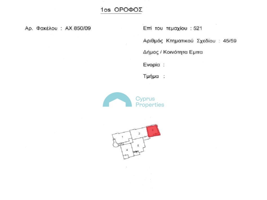 Two-bedroom apartment in Emba community, in Paphos District. It is situated at a distance of 550 meters (approx.) northwest of Lidl supermarket and 1.3km (approx.) northwest of Paphos General Hospital. It is situated close to all necessary amenities and services whereas it enjoys good access to the centre of the community. The apartment with door no.103 was constructed in 2006 and it is part of the complex " Petridia Apartments ". It is located on the first floor of the building and it comprises of kitchen/living room/dining room as an open space, two bedroom and a bathroom with WC and covered veranda.The area of the internal spaces is 62 sqm (approx.) and the covered verandas is 7 sqm.(approx.) and uncovered veranda of 1 sq.m. (approx.).The flat is vacant, and it is considering as ideal choice as it is suitable for rental (short term or long term) or for private use. Two-bedroom apartment in Emba community, in Paphos District. It is situated at a distance of 550 meters (approx.) northwest of Lidl supermarket and 1.3km (approx.) northwest of Paphos General Hospital. It is situated close to all necessary amenities and services whereas it enjoys good access to the centre of the community. The apartment with door no.103 was constructed in 2006 and it is part of the complex " Petridia Apartments ". It is located on the first floor of the building and it comprises of kitchen/living room/dining room as an open space, two bedroom and a bathroom with WC and covered veranda.The area of the internal spaces is 62 sqm (approx.) and the covered verandas is 7 sqm.(approx.) and uncovered veranda of 1 sq.m. (approx.).The flat is vacant, and it is considering as ideal choice as it is suitable for rental (short term or long term) or for private use. Way of Transfer: Assignment of contract The property is being sold through an assignment of a contract of sale, pursuant to which all legal rights of the seller shall be transferred to the new buyer. You are informed that there is no title deed for the subject property, and the seller cannot guarantee that a title deed will be issued in relation to the subject property. You are advised to seek independent advice in advance in the event that the subject property will be purchased through financing, as such assets are not generally accepted by the banks as collaterals for the purpose of granting a loan. For the subject property, no information is available regarding any accruing payments relating to the original contract of sales and/or the developer’s obligations to erect the building based on the approved drawings and/or permits which is a prerequisite for the issuance of a separate Title Deed. The seller cannot guarantee that a title deed will and/or may be issued in relation to the subject property. The seller cannot guarantee on any additional amounts that may be owed towards the seller of the subject property pursuant to the original contract of sales.