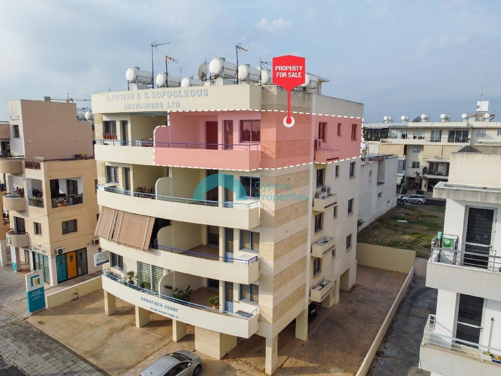 Two-bedroom apartment in the Parish of Agioi Anargyroi II, Municipality of Larnaca. The property is located approximately 200 meters north of Spyros Kyprianou Avenue and approximately 500 meters southeast of Antonis Papadopoulos Stadium. Two-bedroom apartment in the Parish of Agioi Anargyroi II, Municipality of Larnaca. The property is located approximately 200 meters north of Spyros Kyprianou Avenue and approximately 500 meters southeast of Antonis Papadopoulos Stadium. It is located in an area with very good access to amenities such as schools, supermarkets, and other services. The apartment has door number 402 (No. 2) and is located on the fourth floor of a development called "Panagiota Court," which was built in 2007. The property consists of a living room/dining room/kitchen as an open-plan space, two bedrooms, a bathroom with shower, and a covered veranda. The apartment has a covered parking space (No. 9), an uncovered parking space (No. 17), and a storage room (No. 8) on the ground floor. The property has an internal area of 77 sq.m. and 16 sq.m. of covered verandas. It also has a separate Title Deed. The flat is vacant, and it is suitable for private use or for rental use with a good return.