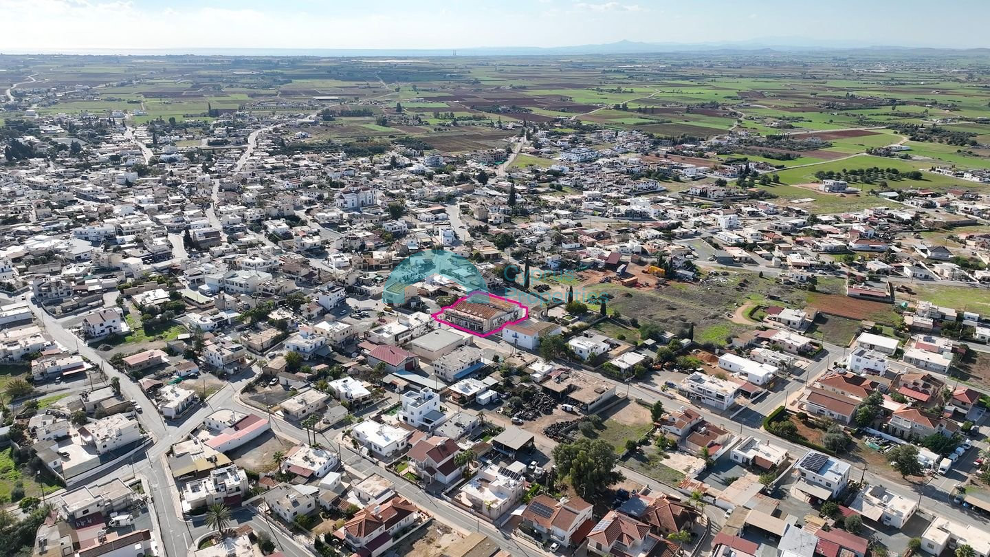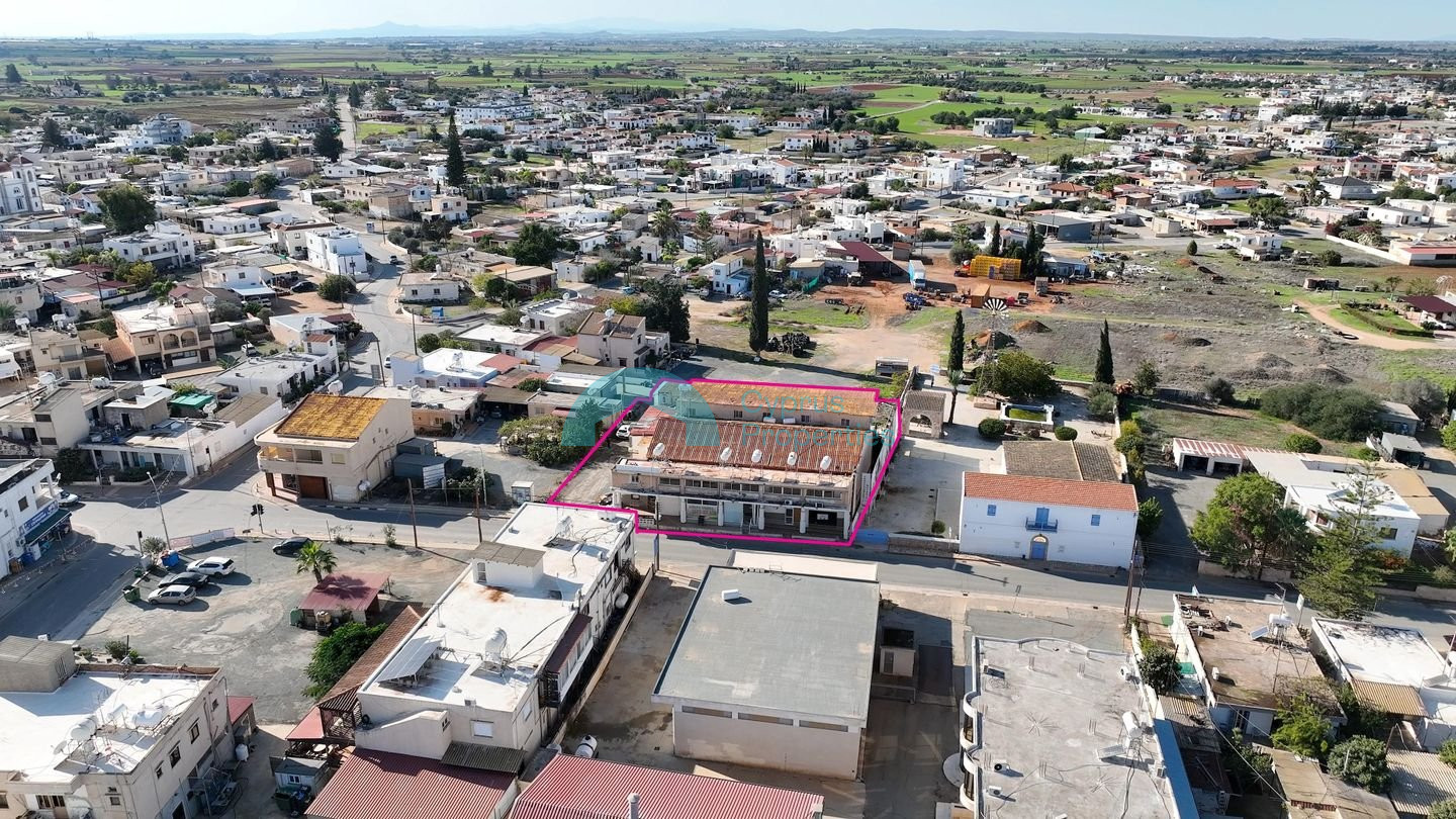 The two-storey mixed-use building is situated on a land parcel of 1,215 sq.m. within the community of Avgorou, Famagusta District. The property is located approx. 280 metres northeast of the Holy Church of Saints Peter and Paul and benefits from direct access to Karion Avenue, with total frontage of approximately 34m. Property Features: • Internal Area: 704 sq.m. • Covered Verandas: 53 sq.m. • Mezzanine: 96 sq.m. The building is divided into two main sections. The eastern section comprises ground-floor extensions used primarily as kitchens and storage areas, while the first floor accommodates residential units. The western section consists, on the ground floor, of a cinema featuring a bar and toilet facilities, a shop previously operating as a butchery, and a storage unit with mezzanine. The first floor of the western section has two-bedroom residential unit. There is a separate title deed for this property. Pending issuance of Energy Performance Certificate.