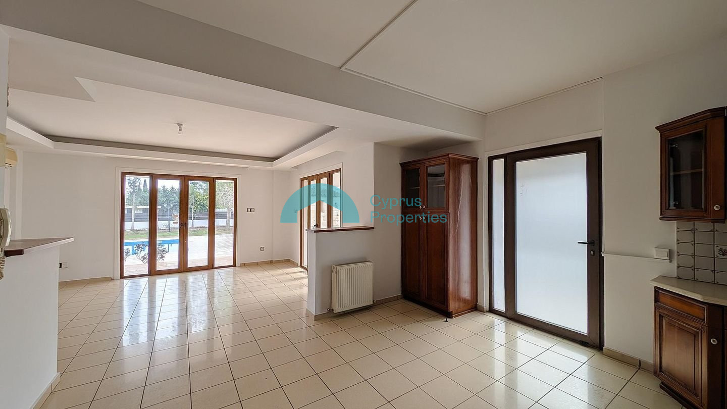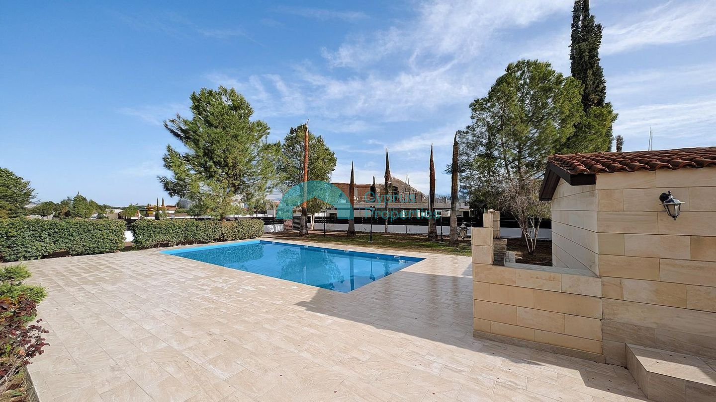 This spectacular two-storey mansion is located in one of the most prestigious and up-and-coming areas of Latsia, Nicosia. Perfectly positioned in the Agios Georgios quarter, the property offers a blend of luxury and convenience, situated just minutes from the Nicosia-Limassol (A1) highway. Property Highlights: Expansive Plot: Set on a generous 1,144 sq.m. land area. Superior Living Space: 298 sq.m. of refined interiors and 89 sq.m. of covered verandas. Outdoor: Features a private swimming pool, a dedicated BBQ area, and a large yard—perfect for entertaining. Ample Parking: A 40 sq.m. covered garage plus additional parking space. Key Specifications: Enclosed Area: 298 sq.m. Covered Verandas: 89 sq.m. Auxiliary Building: 8 sq.m. Features: Storage unit, engine room, and central heating provisions. Interior Layout: Ground Floor: An impressive open-plan entrance hall leads to spacious dining and living areas, a separate sitting room, a guest W/C, and a modern kitchen-sitting room. First Floor: Designed for comfort, this level includes a private office, a laundry room, and three spacious bedrooms. The master suite features an en-suite bathroom and a walk-in wardrobe, while a second bedroom also enjoys its own en-suite shower. Prime Location: Conveniently located 870m from the highway and 1km from the Laiki/Lefkothea Sporting Club, providing easy access to premium amenities. The property falls within Zone Κα8, with a building coefficient of 60%, coverage of 35%, and permission for 2 floors (8.3m) of construction. Energy Performance Certificate is pending.