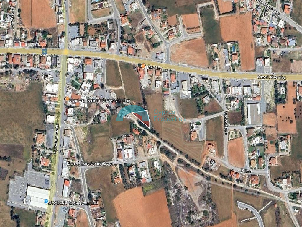 Residential plot in the Kokkinotrimithia community in the Nicosia district. It is located approximately 100 meters south of Grigoris Afxentiou Avenue and approximately 550 meters west of the Church of Apostolos Varnavas. Residential plot in the Kokkinotrimithia community in the Nicosia district. It is located approximately 100 meters south of Grigoris Afxentiou Avenue and approximately 550 meters west of the Church of Apostolos Varnavas. The property it is ideally situated close to a plethora of amenities and services such as schools, banks, supermarkets, shops etc. The property is triangular in shape with a flat surface and is accessible via an unregistered dirt road. It should be noted that the property is located approximately 95 meters west of the nearest registered road. The property falls within Residential Zone H2 with a building density of 90%.