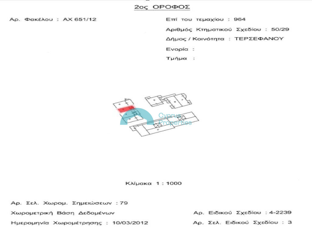 Three-bedroom, three-story apartment in the community of Tersefanou, Larnaca District. The property is located approximately 600 meters northeast of the community center and approximately 800 meters northwest of the Tersefanou-Kiti connecting road. Three-bedroom, three-story apartment in the community of Tersefanou, Larnaca District. The property is located approximately 600 meters northeast of the community center and approximately 800 meters northwest of the Tersefanou-Kiti connecting road. It is close to all necessary services and amenities. It also enjoys good access to the surrounding communities, the motorway, and the city of Larnaca. The apartment has door number M9 (No. 29) and is located on the ground floor of a development called "Paramount Garden Resort," which was built in 2010. The property consists of three floors. The ground floor consists of a kitchen/dining room/living room as an open-plan space, a guest toilet, and an uncovered veranda. The first floor consists of two bedrooms, both with en-suite bathroom/shower, and an uncovered veranda. The third floor consists of one bedroom with en-suite bathroom/shower and a semi-covered veranda. The apartment has a covered parking space (No. 10).The property has an internal area of 137 sq.m., 9 sq.m. of covered verandas, and 29 sq.m. of uncovered verandas. It also has a separate Title Deed. The apartment is vacant, and it is suitable for private use or for rental with a good return. The asset does not qualify for the 50% reduction of property transfer fees imposed or levied by the Department of Lands and Surveys (Fees and Charges) Law (Cap.219). The asset does not qualify for the 50% reduction of property transfer fees imposed or levied by the Department of Lands and Surveys (Fees and Charges) Law (Cap.219).