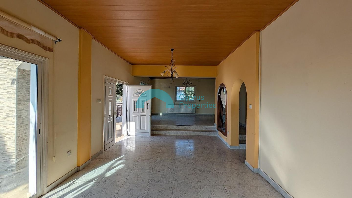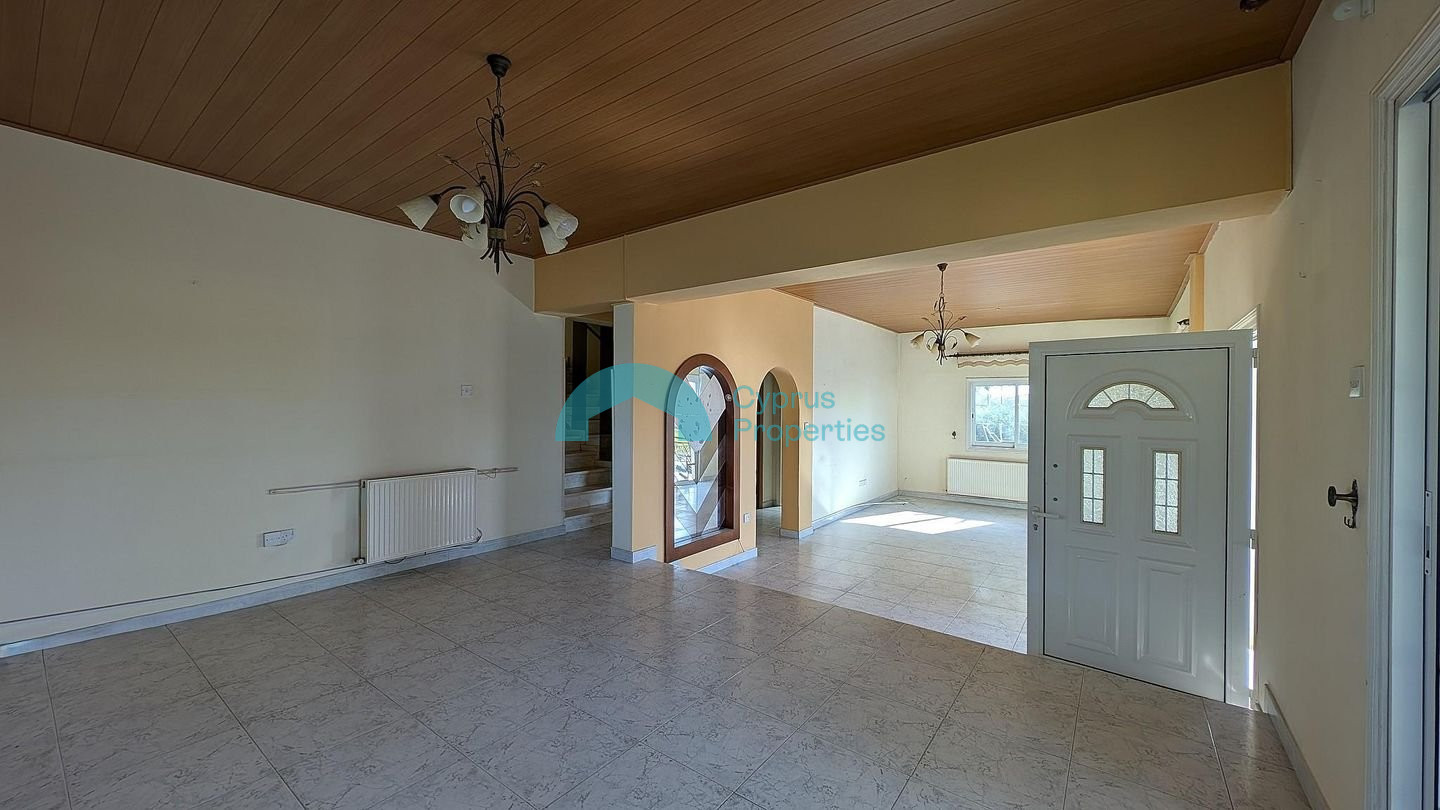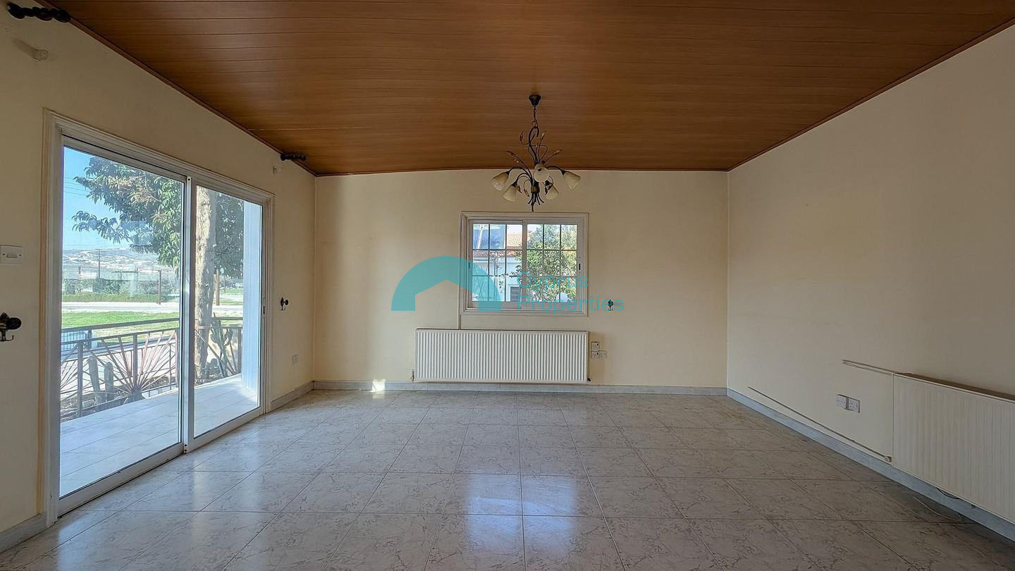 This charming, detached home offers a unique semi-raised design and plenty of space, perfect for family living. Located in the quiet community of Alethriko, the property sits on a 57% share of a plot with a Distribution Agreement in place and a planning permit application has been submitted for the division into 5 plots. Following the division, the plot size will be 847 sq.m. Built in 2002, the home features a functional and welcoming layout: •Ground Floor: A welcoming entrance hall leads into a large open-plan living and dining area, complemented by a spacious kitchen with its own secondary dining room. •Semi-Raised Level: A short staircase leads to three (3) comfortable bedrooms and a family bathroom. •Rooftop: A highlight of the property is the rooftop area, which includes a large, uncovered veranda. Key Features & Sizes: Internal Area: 198 sq.m. Covered Verandas: 16 sq.m. Uncovered Verandas: 106 sq.m. Exterior & Utilities: The outdoor area is designed for convenience, featuring: • Covered and uncovered verandas. • Α covered parking space. • A dedicated storage unit. Location: Enjoy a peaceful village lifestyle with excellent highway connectivity: • 650m from Alethriko community center. • 400m south of the Larnaca – Limassol Highway (A5) for easy commuting. • 5km from Tersefanou community center. There is a Distribution Agreement in place. Pending issuance of Energy Performance Certificate.
