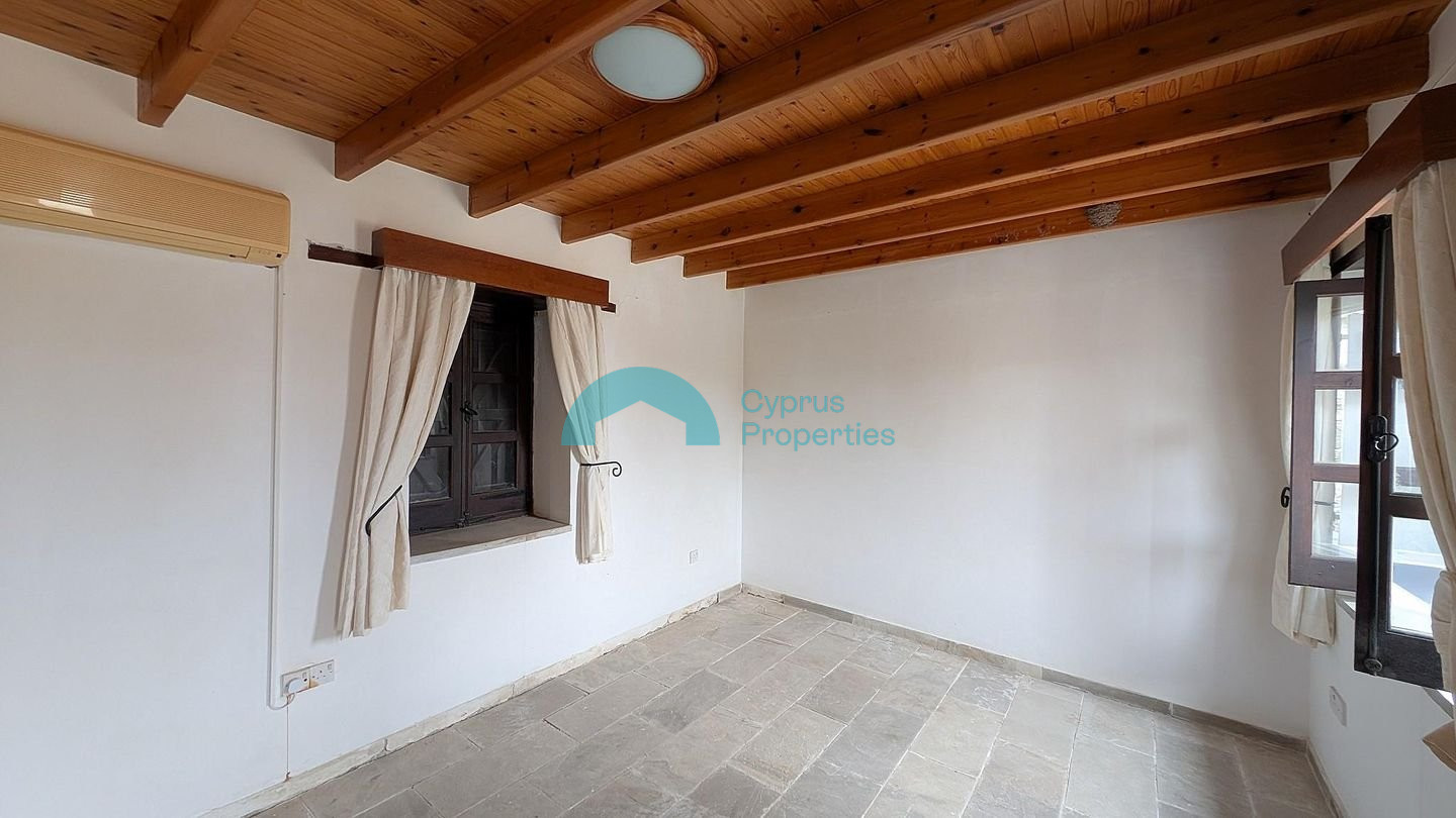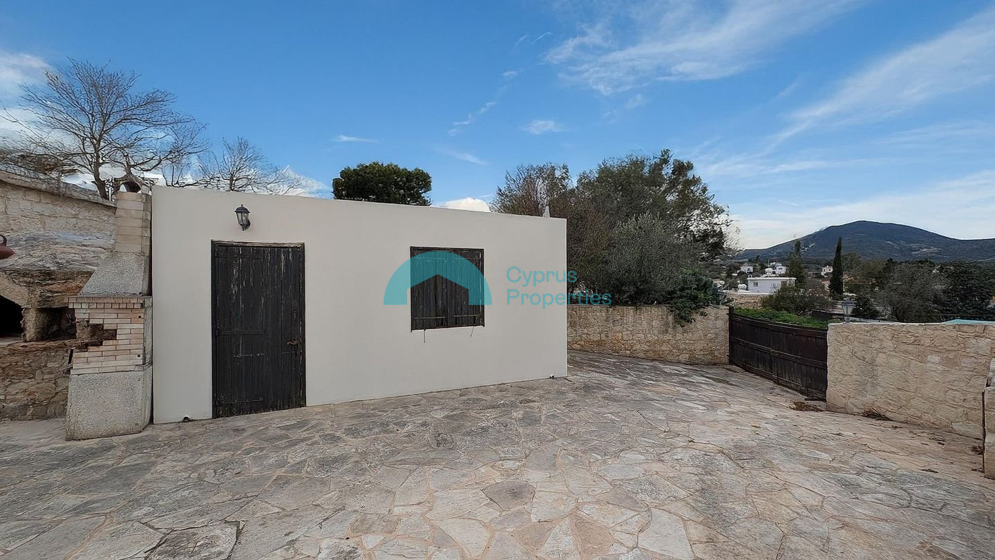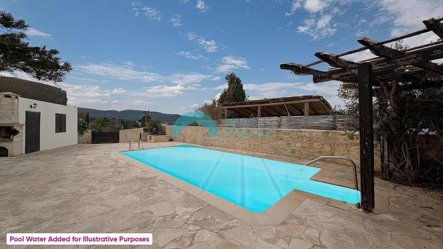 This charming traditional ground-floor stone house is perfectly located in the beautiful Neo Chorio Village, Paphos. Combining authentic character with modern comforts, it offers a peaceful lifestyle in one of Cyprus's most desirable locations. Key Features & Sizes: Land Area: 464 sq.m. Enclosed Area: 150 sq.m. Covered parking: 21 sq.m. The Layout: Living Space: An open-plan kitchen, dining, and living area featuring a cozy traditional fireplace. Bedrooms: Three (3) comfortable bedrooms, including a master bedroom with an en-suite bathroom, plus a family bathroom. External Living Room: Includes a second, separate living room. Outdoor Features: • Private Swimming Pool • Covered parking space and two separate entrances (northern and southern). • Perimeter fencing. Prime Location: • Only 300m from the community church. • Approx. 1.9 km from the beautiful coastline. There is a separate title deed for this property. Pending issuance of Energy Performance Certificate.