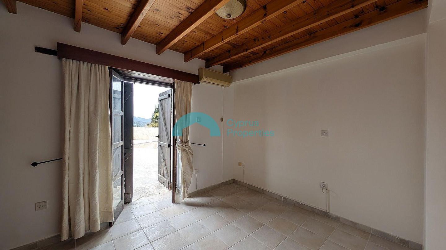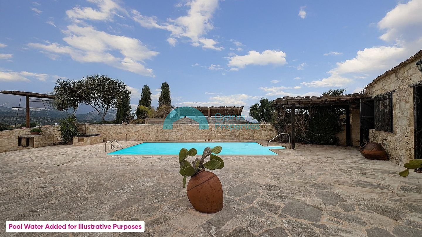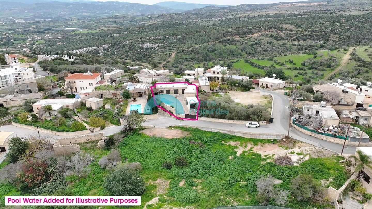 This charming traditional ground-floor stone house is perfectly located in the beautiful Neo Chorio Village, Paphos. Combining authentic character with modern comforts, it offers a peaceful lifestyle in one of Cyprus's most desirable locations. Key Features & Sizes: Land Area: 464 sq.m. Enclosed Area: 150 sq.m. Covered parking: 21 sq.m. The Layout: Living Space: An open-plan kitchen, dining, and living area featuring a cozy traditional fireplace. Bedrooms: Three (3) comfortable bedrooms, including a master bedroom with an en-suite bathroom, plus a family bathroom. External Living Room: Includes a second, separate living room. Outdoor Features: • Private Swimming Pool • Covered parking space and two separate entrances (northern and southern). • Perimeter fencing. Prime Location: • Only 300m from the community church. • Approx. 1.9 km from the beautiful coastline. There is a separate title deed for this property. Pending issuance of Energy Performance Certificate.
