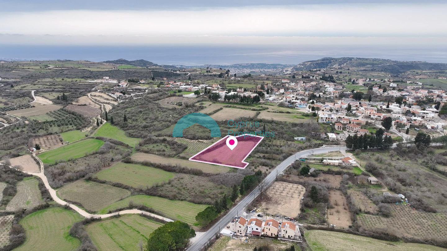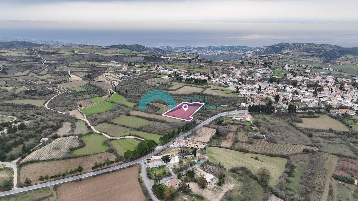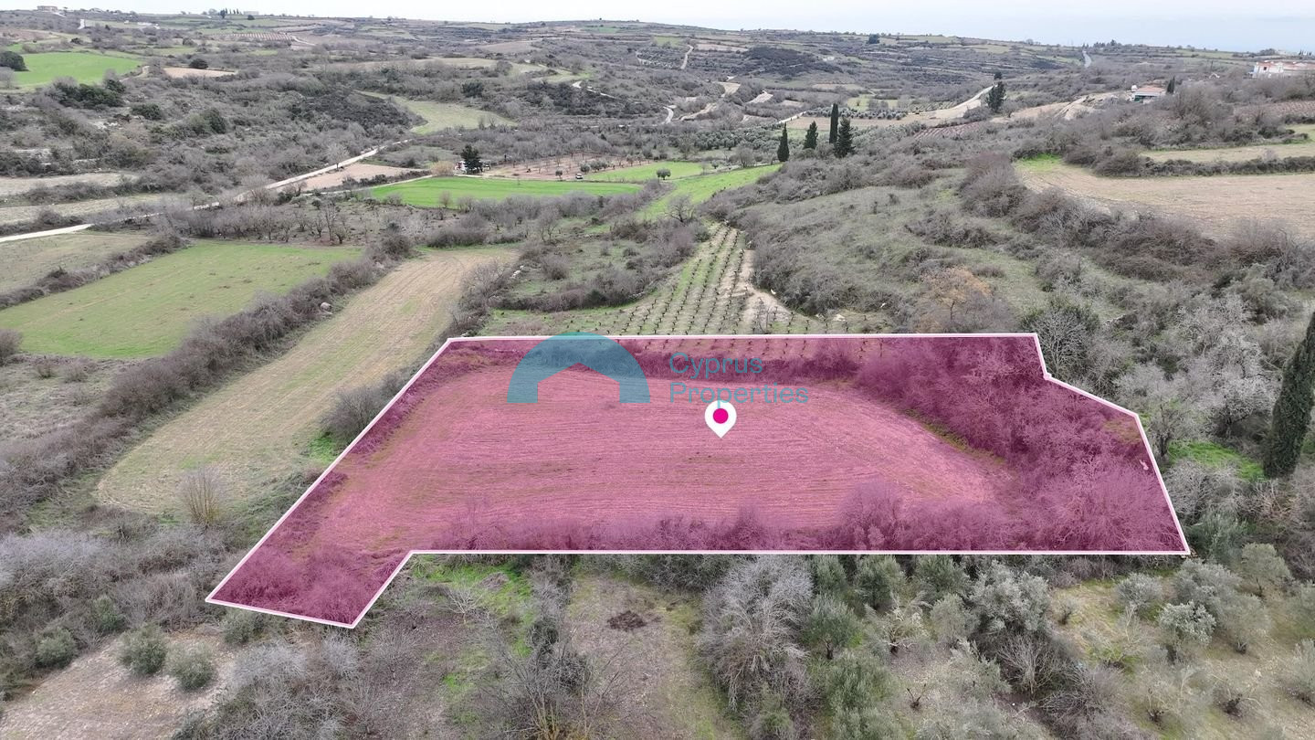 Residential field, extending to about 3,679 sq.m. in total, located in Kathikas community, Paphos District. The field is rectangularly shaped with a flat surface. The asset is located approximately 25m south of the main Kathikas–Pano Arodes road and approximately 110m northeast of the Kathikas Primary School. The property falls within Zone Κα8δ, with a building coefficient of 60%, coverage of 35%, and permission for 2 floors (7m) of construction. There is a separate title deed for this property.