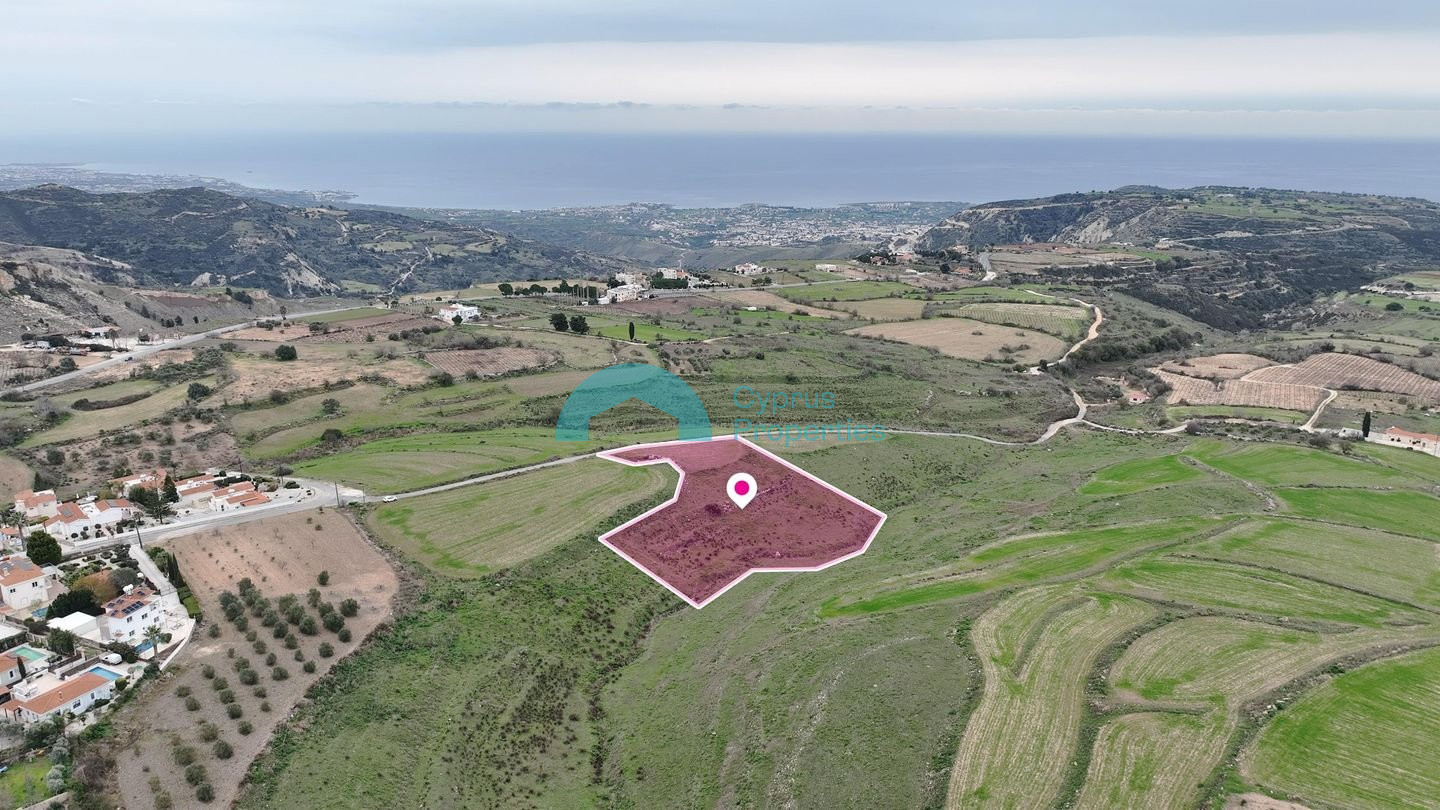 Located in the serene and picturesque village of Kathikas, this expansive field extends to approximately 5,686 sq.m. and offers a rare combination of tranquil living and panoramic views toward the sea. This property offers a perfect blend of rural tranquility and strategic access, featuring a generous 52m frontage on a registered road. The asset is strategically positioned approximately 300m north of the Peyia-Kathikas main road and 1km west of the Kathikas-Stroumbi main road, providing a quick connection to both the coast and the Paphos district. The property falls within a dual zone: •Zone Δα1 (69%): Building coefficient of 0.5%, coverage of 0.5%, and permission for 1 floor (5m). •Zone Τ3δ5α (31%): Building coefficient of 25%, coverage of 15%, and permission for 2 floors (8.2m). There is a separate title deed for this property.