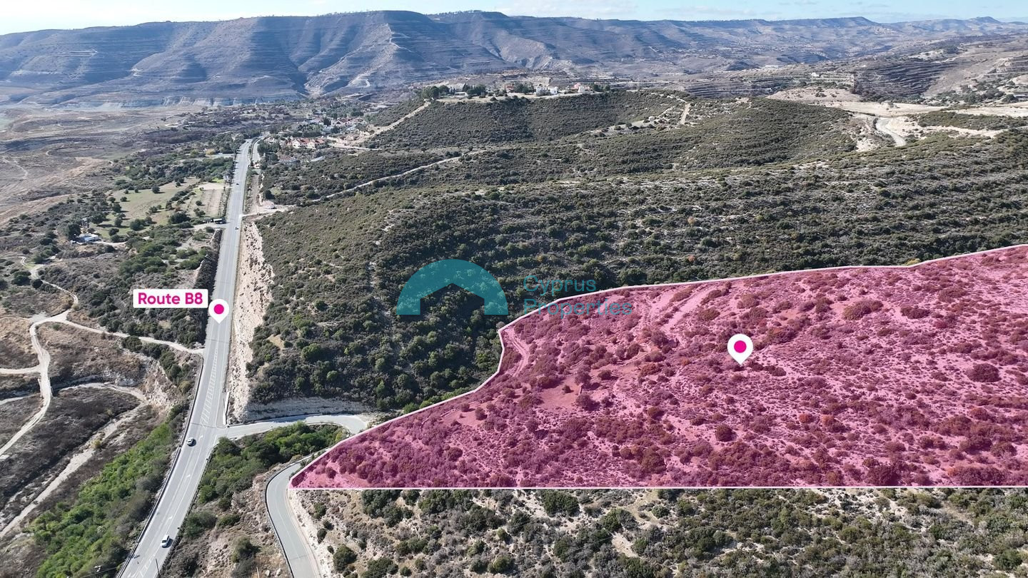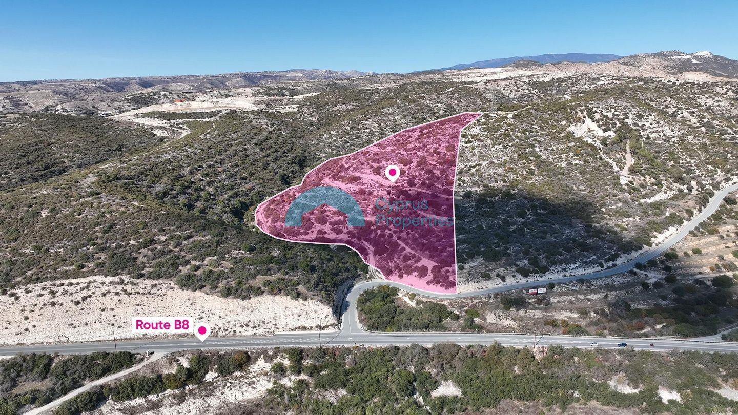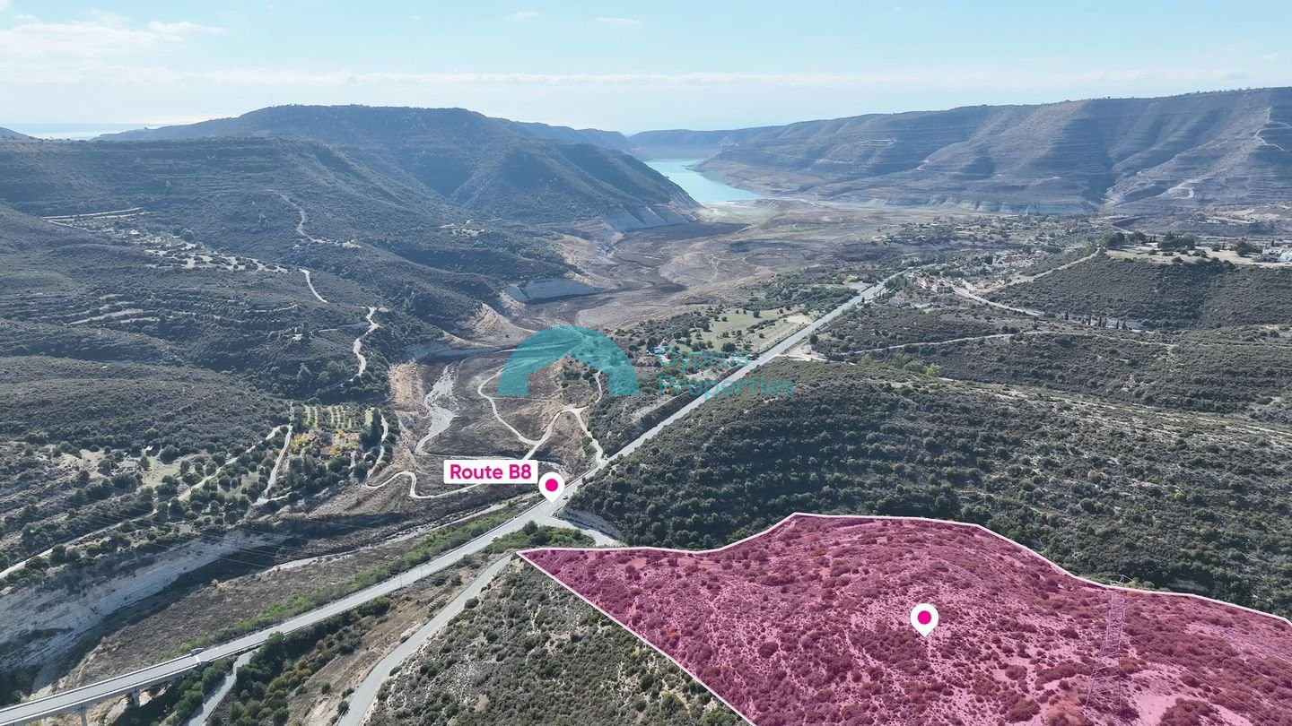 An excellent opportunity to acquire a 100% share of a substantial protection-zone field located in the scenic community of Alassa, Limassol district. Positioned on elevated ground, the property enjoys open views towards the Kouris Dam, offering a rare sense of space, privacy and natural beauty. The field extends to a total area of 66,230 sq.m. and is situated approximately 700m northeast of Alassa village centre, just 40m north of the main Limassol–Saitas Road, and around 1.8km northeast of Kouris Dam. Its strategic location provides easy access while maintaining a tranquil rural setting. The asset benefits from direct frontage of approximately 45m along a public registered road on its southeastern boundary, enhancing accessibility and future potential. Within the field there is an old obsolete structure with no economic value. This property is ideal for buyers seeking a large land holding in a growing rural area of Limassol, with strong long-term potential, excellent access, and commanding natural views. The property falls within Zone Ζ3-ΠΤ, with a building coefficient of 1%, coverage of 1%, and permission for 1 floor (5m) of construction. There is a separate title deed for this property.