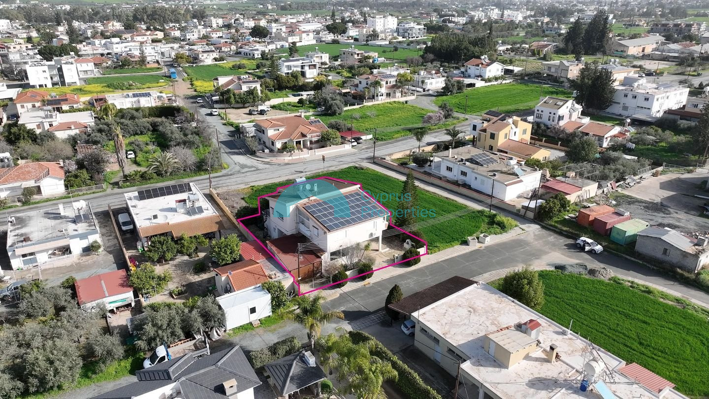 An excellent opportunity to acquire a two-storey detached residence, located in Pera Chorio, within the Southern Nicosia – Dali Municipality. The property enjoys a prime residential setting, combining quiet neighborhood living with immediate access to main road connections and everyday amenities. The house was constructed in two phases (upper floor in 1988 and ground floor in 1991) on a registered plot of 518 sq.m., benefiting from approximately 23 m. of frontage along Amathounta Street on its southern boundary. Prime Location: •890m northeast of the Pera Chorio–Nisou interchange. •135m east of Lemesos Avenue. •450m from Pera Chorio Primary School and 850m from the Gymnasium. •Offers quick access to Nicosia while maintaining a peaceful environment. Property Layout: •Ground Floor (Approx. 80 sq.m. internal area): •Kitchen and dining area. •One (1) bedroom and a bathroom with shower. •External Features: 24 sq.m. covered balcony, 13 sq.m. uncovered area, and a 103 sq.m. piloti/covered parking. •Note: Part of the piloti has been enclosed and converted into a separate room with a kitchen, offering flexibility for guest accommodation or office use. Upper Floor (Approx. 170 sq.m. internal area): •Spacious living and dining area. •Separate kitchen. •Three (3) bedrooms. •Main bathroom (bath/toilet) plus an additional shower room. •Covered verandas: 38 sq.m. Additional Features: •Systems: Central diesel heating and A/C split units. •Ancillary: 5 sq.m. storage/utility building and a yard. Note: Pending issuance of Energy Performance Certificate (EPC).