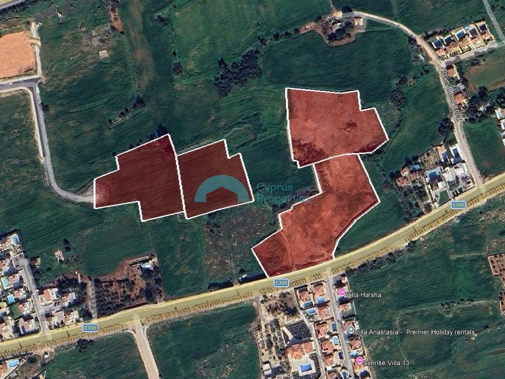 The property for sale concerns 4 touristic abutting/ nearby fields, in Sotira’s Municipality, in Famagusta District. The property is located approximately 2 km west from Agia Napa marina and approximately 210 meters south from Famagusta – Larnaca motorway. The property for sale concerns 4 touristic abutting/ nearby fields, in Sotira’s Municipality, in Famagusta District. The property is located approximately 2 km west from Agia Napa marina and approximately 210 meters south from Famagusta – Larnaca motorway. As a single unit, it has an irregular shape with an even surface and it abuts onto a public registered road (Agia Thekla – parcel no. 216) along its south boundary with frontage of approximately 79 meters. The property falls within the T2β Tourist Zone which provides for various tourist uses such as Hotels, houses and tourist villages with the corresponding building factor. The properties are sold as a single unit with total area of 29.489sqm. The asset does not qualify for the 50% reduction of property transfer fees imposed or levied by the Department of Lands and Surveys (Fees and Charges) Law (Cap.219). The asset does not qualify for the 50% reduction of property transfer fees imposed or levied by the Department of Lands and Surveys (Fees and Charges) Law (Cap.219).