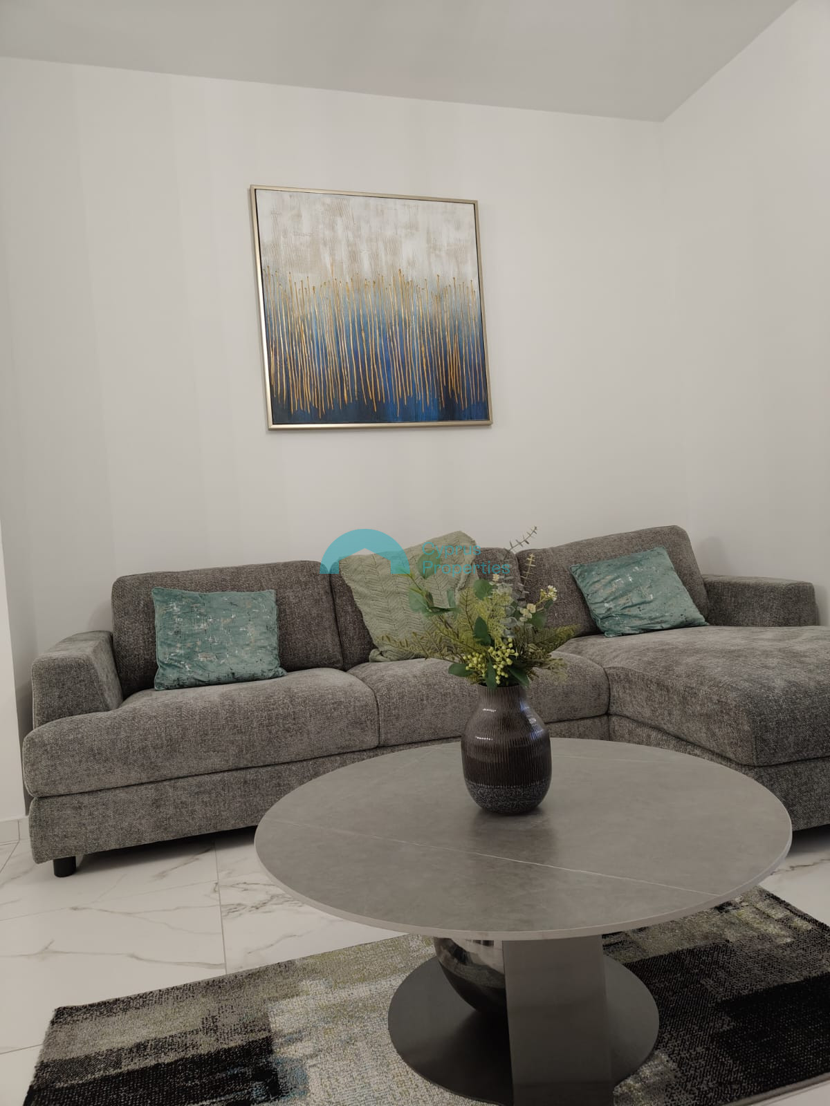 The property features two comfortable bedrooms, including a master suite with its own bathroom, and a second modern bathroom for guests or family. The living space is bright and open, leading to a stylish, fully-equipped kitchen with plenty of storage. Every room is tastefully furnished, making moving in quick and easy.