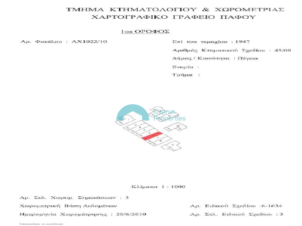 A semidetached three-bedroom house is available for sale in the Municipality of Pegeia, in the District of Paphos. The property is located approximately 600 meters northeast of the center of the Municipality and approximately 450 meters north of the Pegeia Municipal School. A semidetached three-bedroom house is available for sale in the Municipality of Pegeia, in the District of Paphos. The property is located approximately 600 meters northeast of the center of the Municipality and approximately 450 meters north of the Pegeia Municipal School. It is located in a quiet area, with very good access to amenities such as schools, supermarkets, and other services. The house has door number 7 (No. 6) and is located in the southeastern part of the development known as "Lakkos 2," which was constructed in 2008. The house consists of a living room/dining room/kitchen as an open-plan space, three bedrooms, two of which have en-suite bathrooms/showers with toilets and verandas. The property has a covered area of approximately 100 sq.m., a covered veranda of approximately 7 sq.m., and an uncovered veranda of approximately 7 sq.m. The property is vacant, and it is suitable for private use or for rental use with a good return. Way of Transfer: Assignment of contractThe property is being sold through an assignment of a contract of sale, pursuant to which all legal rights of the seller shall be transferred to the new buyer. You are informed that there is no title deed for the subject property, and the seller cannot guarantee that a title deed will be issued in relation to the subject property. You are advised to seek independent advice in advance in the event that the subject property will be purchased through financing, as such assets are not generally accepted by the banks as collaterals for the purpose of granting a loan.For the subject property, no information is available regarding any accruing payments relating to the original contract of sales and/or the developer’s obligations to erect the building based on the approved drawings and/or permits which is a prerequisite for the issuance of a separate Title Deed. The seller cannot guarantee that a title deed will and/or may be issued in relation to the subject property. The seller cannot guarantee on any additional amounts that may be owed towards the seller of the subject property pursuant to the original contract of sales.