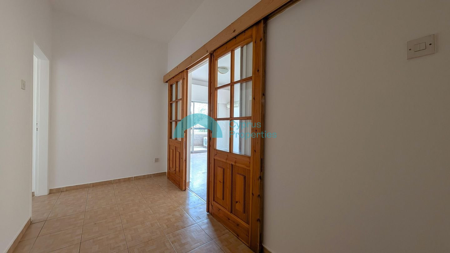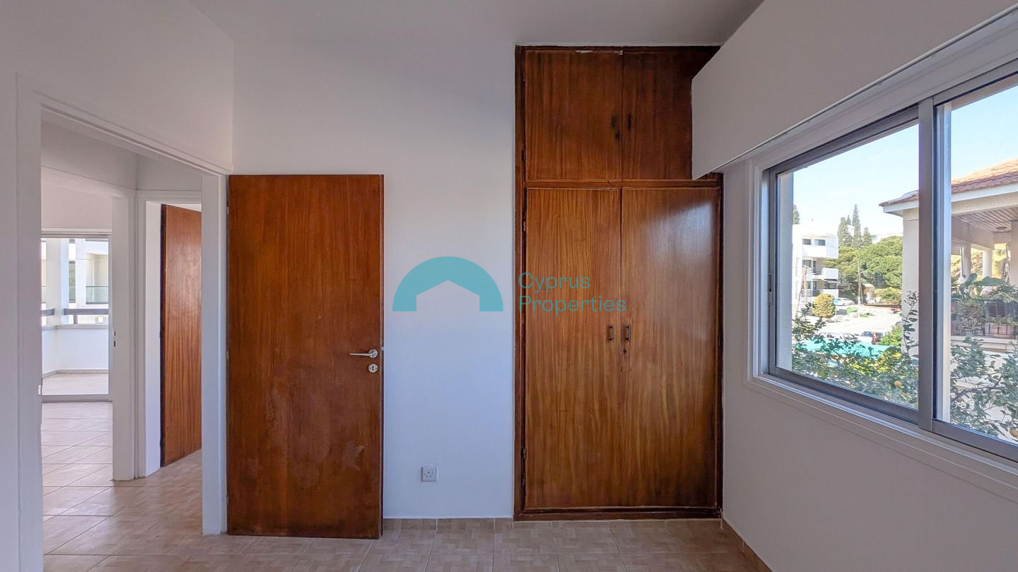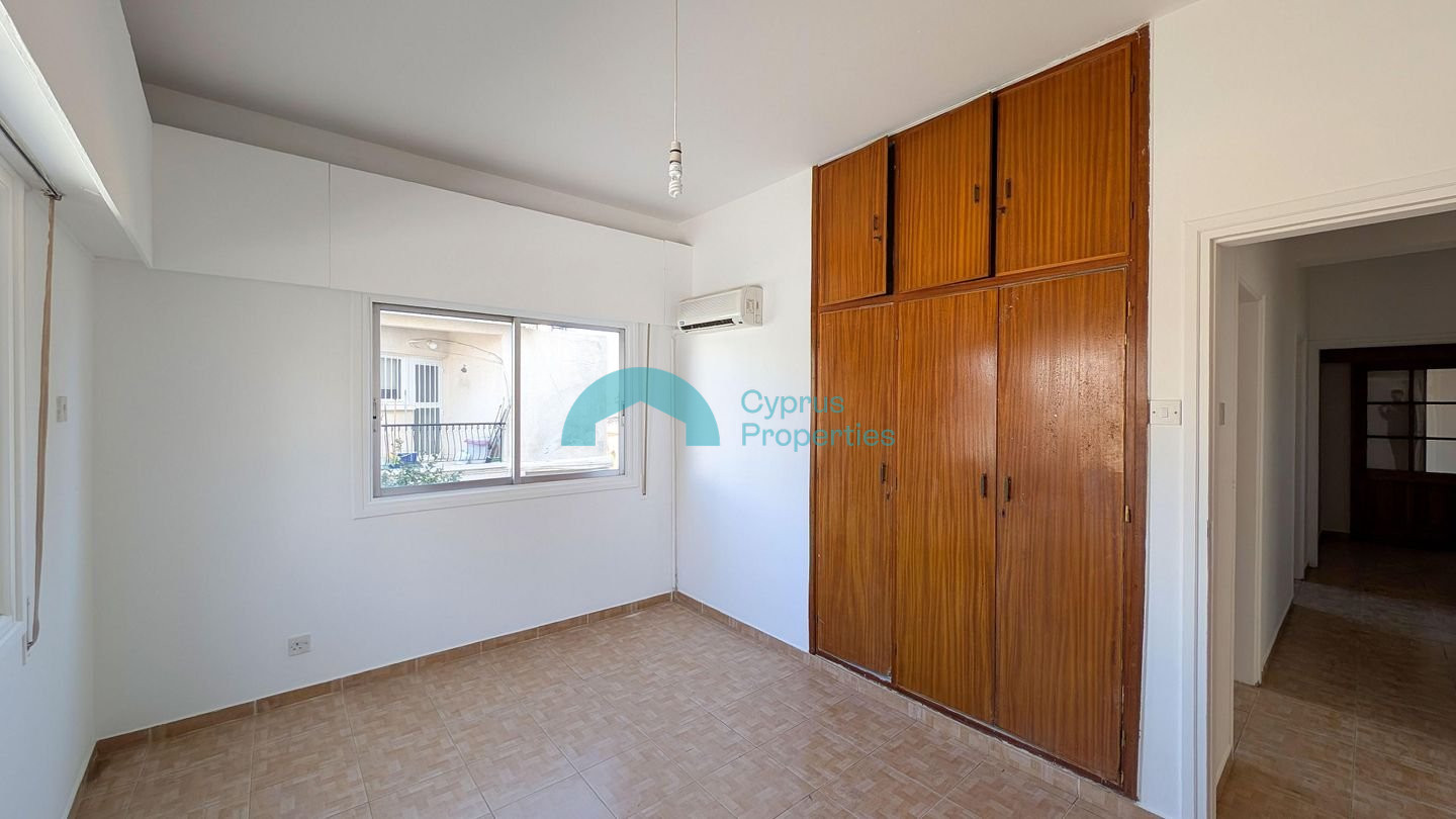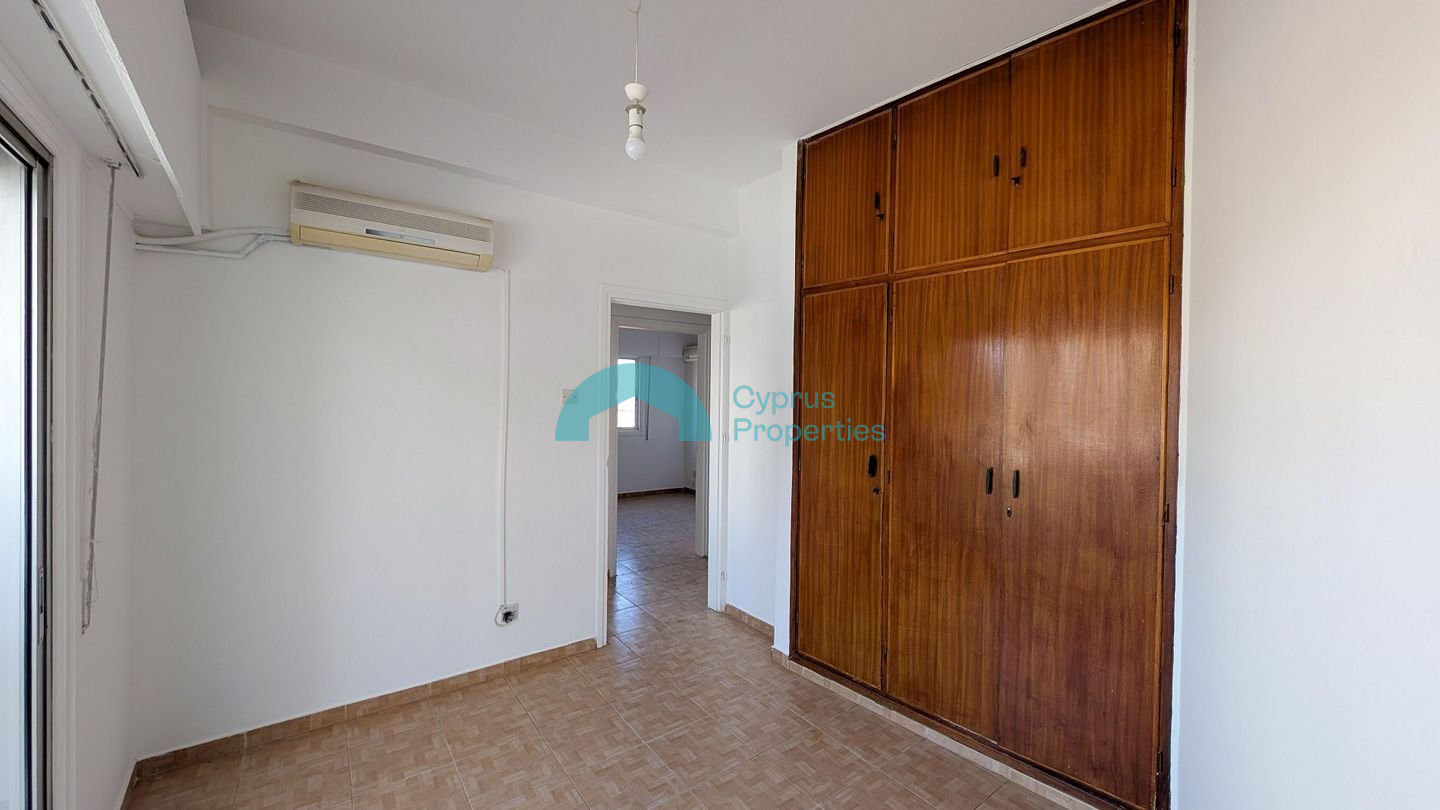 Convenient 3-bedroom apartment in the heart of Larnaca's Agios Nikolaos area. Property Highlights: • Internal Area: 90 sq.m. • Covered Verandas: 13 sq.m. • Unit Details: Door No. 13, 1st Floor • Year of Construction: 1983 Internal Layout: The apartment consists of a hall, living room, kitchen, one bathroom, three bedrooms, and two covered verandas. Location: The property is ideally located approximately: • 240m south of Georgiou Griva Digeni Avenue. • 460m north of Faneromenis Avenue. • 1.7km west of the coastline. There is a separate title deed for this property. Pending issuance of Energy Performance Certificate.