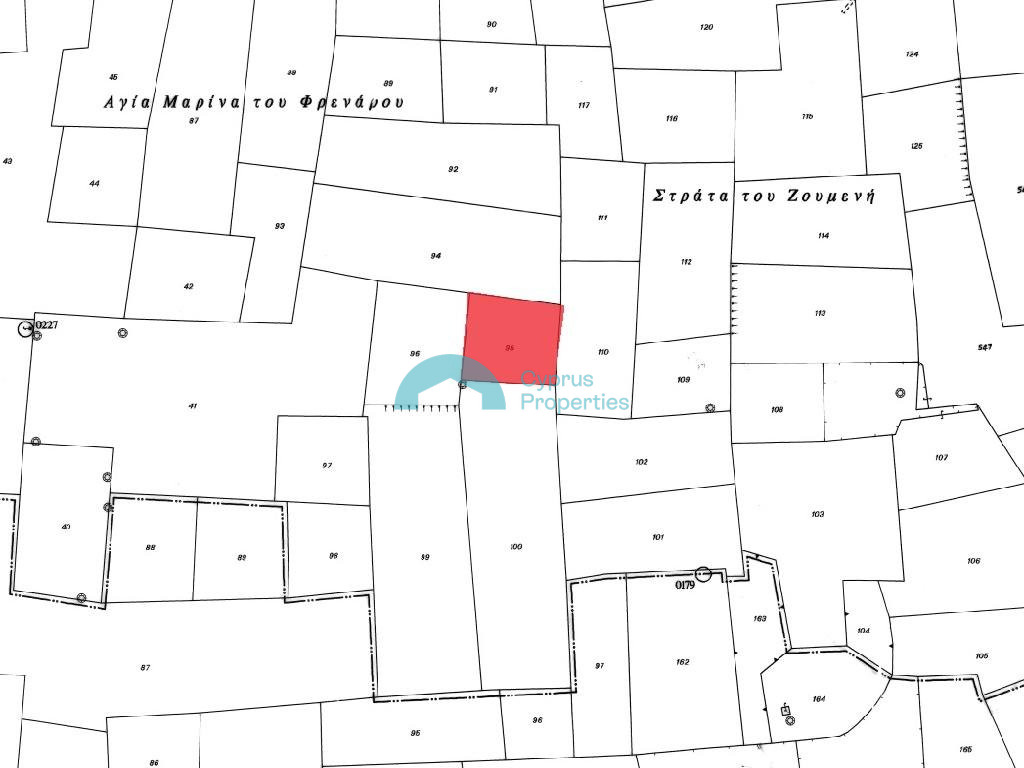 Agricultural field in Deryneia community of Famagusta district. It is located approximately 370 meters west of the High School of Eirinis & Eleftherias and approximately 830 meters west of the road connecting the communities of Deryneia - Sotiras. Agricultural field in Deryneia community of Famagusta district. It is located approximately 370 meters west of the High School of Eirinis & Eleftherias and approximately 830 meters west of the road connecting the communities of Deryneia - Sotiras. It has a regular shape with an flat surface and it is landlocked. It should be noted that it is located approximately 285 meters southwest of the nearest registered road and approximately 185 meters west of the nearest residential area of the community. The property falls within the Agricultural Zone Γα2, having a building density of 6%. Notes: Provisional title issued in accordance with Article 10 of Law 44/84.