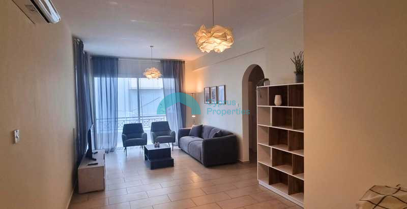 Fully furnished 2-bedroom, 2-bathroom apartment in Agios Theodoros. Bright living area, equipped kitchen, and ground-floor access. Close to all amenities. 85sqm Uncovered parking