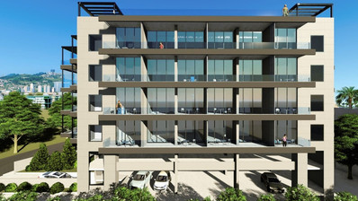 The flat also has a rooftop over-flow communal pool and covered parking.