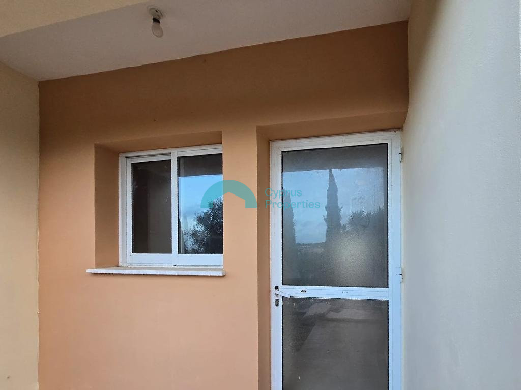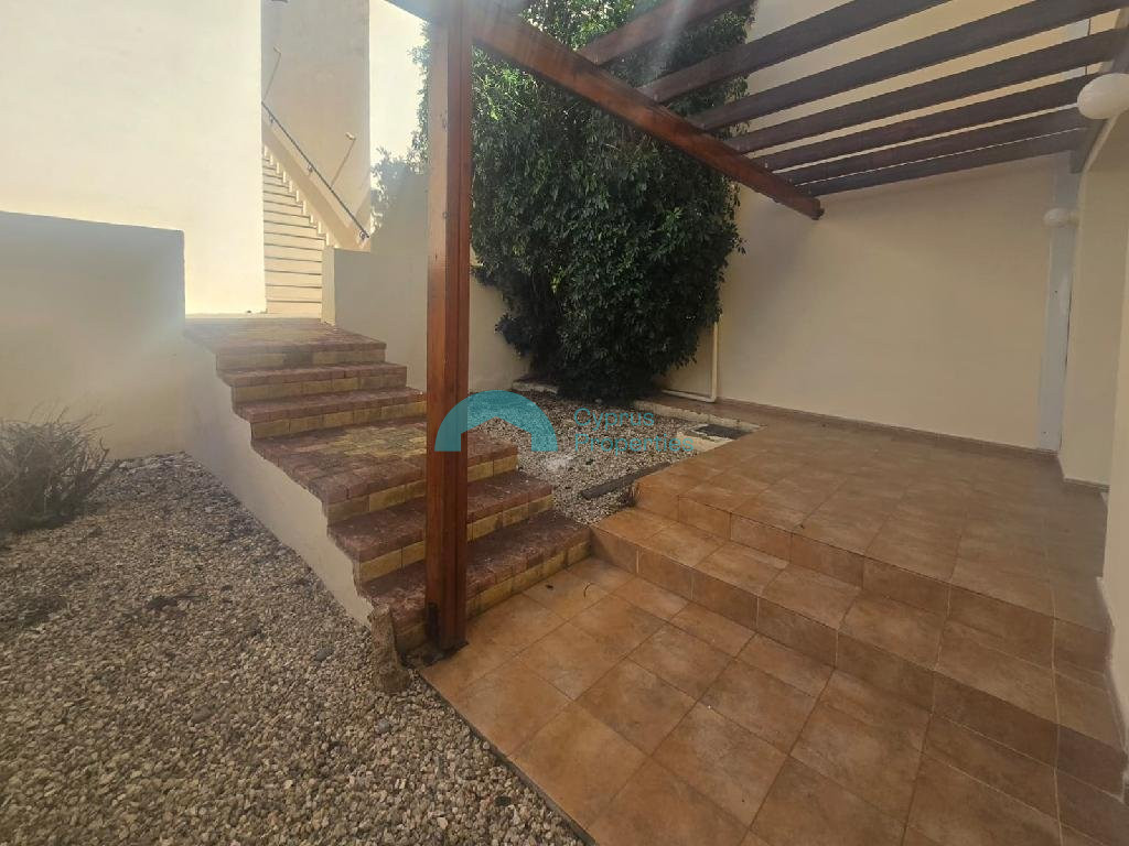 A two-story, two-bedroom house in the community of Chloraka, in the Paphos District. It is located approximately 500 meters southeast of the Chloraka Municipal Stadium and about 850 meters east of Chloraka Avenue. A two-story, two-bedroom house in the community of Chloraka, in the Paphos District. It is located approximately 500 meters southeast of the Chloraka Municipal Stadium and about 850 meters east of Chloraka Avenue. It is situated in an area with excellent access to amenities such as schools, supermarkets, and other services. The property has door number 3 (No. 6) and is located on the ground floor of the “Thalassa View Gardens” development, which was built in 2010. The ground floor consists of a dining room/living room/kitchen as an open-plan space, a guest bathroom, and verandas. The first floor consists of three bedrooms, a bathroom, and verandas. Additionally, the property features two yards (Nos. 21 and 22). The property has an internal area of 85 sq. m., 6 sq. m. of covered verandas, and 20 sq. m. of uncovered verandas. It also has a separate Title Deed. The flat is vacant, and it is suitable for private use or for rental use with a good return.
