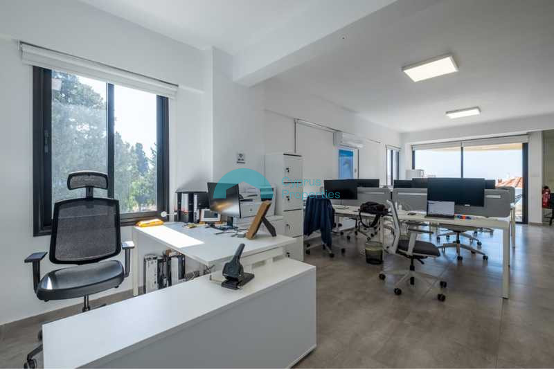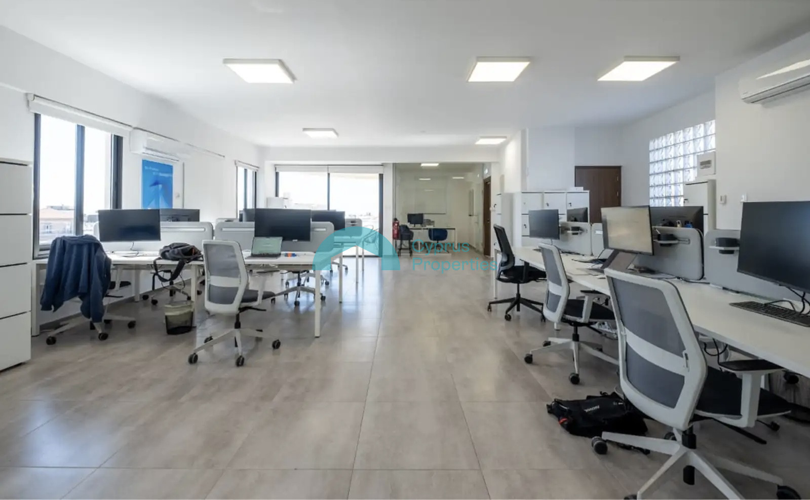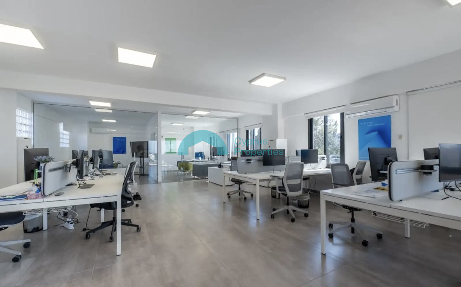 Modern and fully furnished offices located in the heart of Paphos, offering 300m² across two floors of 150m² each. Designed for productivity and comfort, the space features bright interiors, glass partitions, and a large balcony with open views.