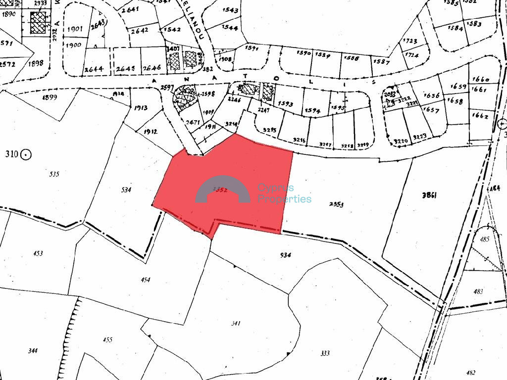 Residential field in Agioi Kostantinos and Elenis Parish, in Dali Municipality of Nicosia district. It is situated at a distance approximately 920m southeast of the community Third Elementary School of Dali and approximately 380m east of the Lemesou Avenue. Residential field in Agioi Kostantinos and Elenis Parish, in Dali Municipality of Nicosia district. It is situated at a distance approximately 920m southeast of the community Third Elementary School of Dali and approximately 380m east of the Lemesou Avenue. It has a irregular shape with an flat surface and north facing, with a frontage of approximately 54 meters on a public registered road. The property falls within the Residential Zone Κα8 (98%), having a building density of 60% and within the Residential Zone Κα6 (2%), having a building density of 90%. Notes: This property was created by division in accordance with Article 27, Chapter 224. (1/EΣ/539/2004)
