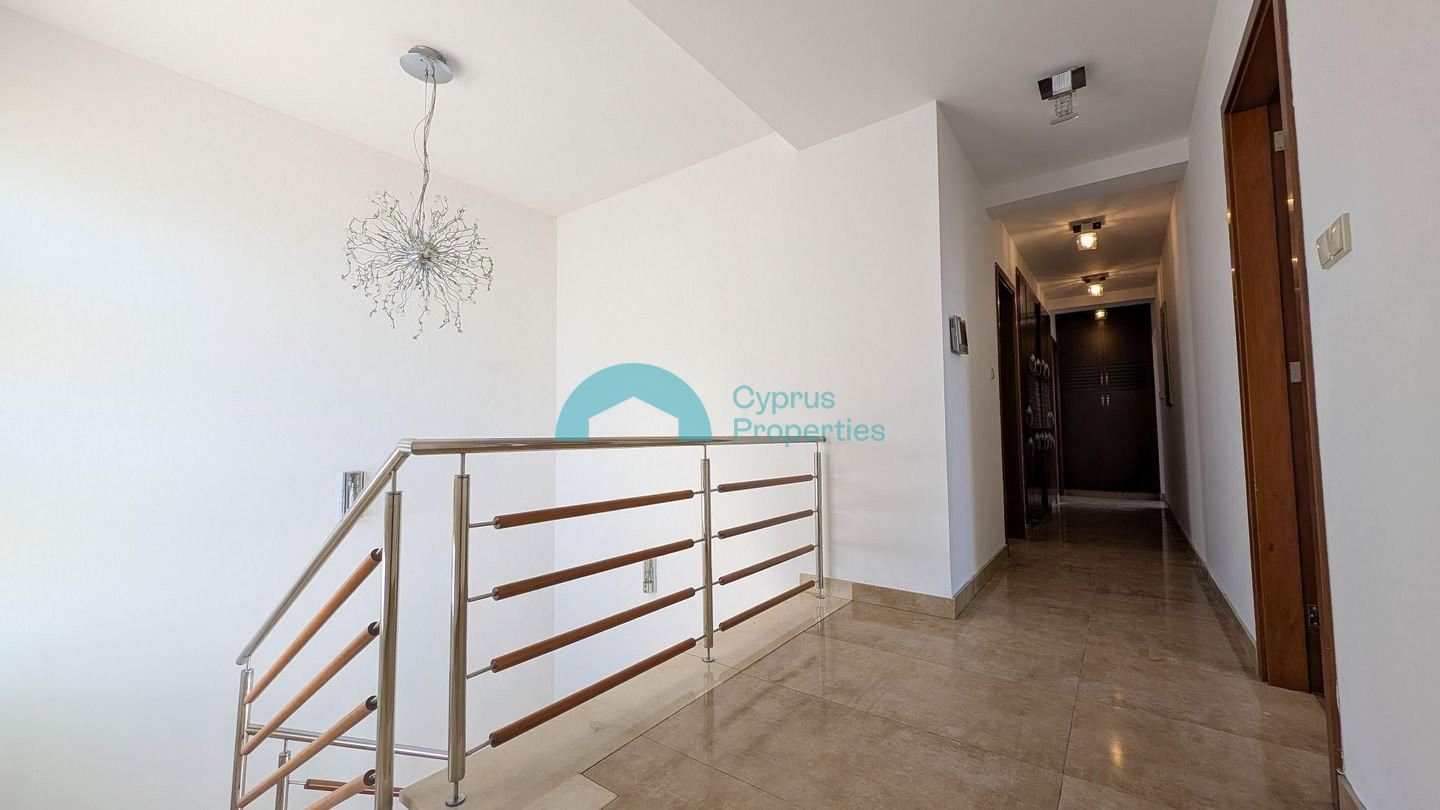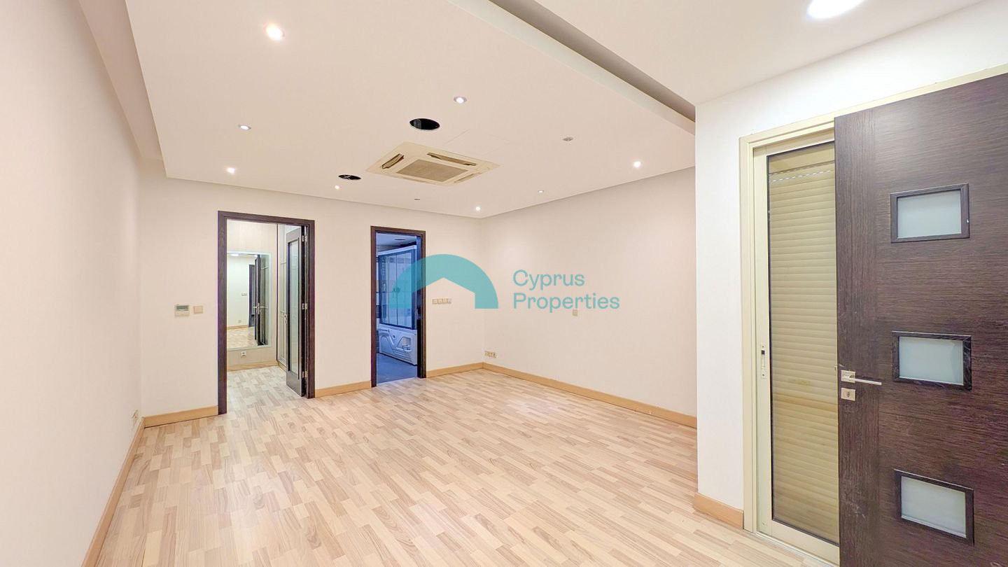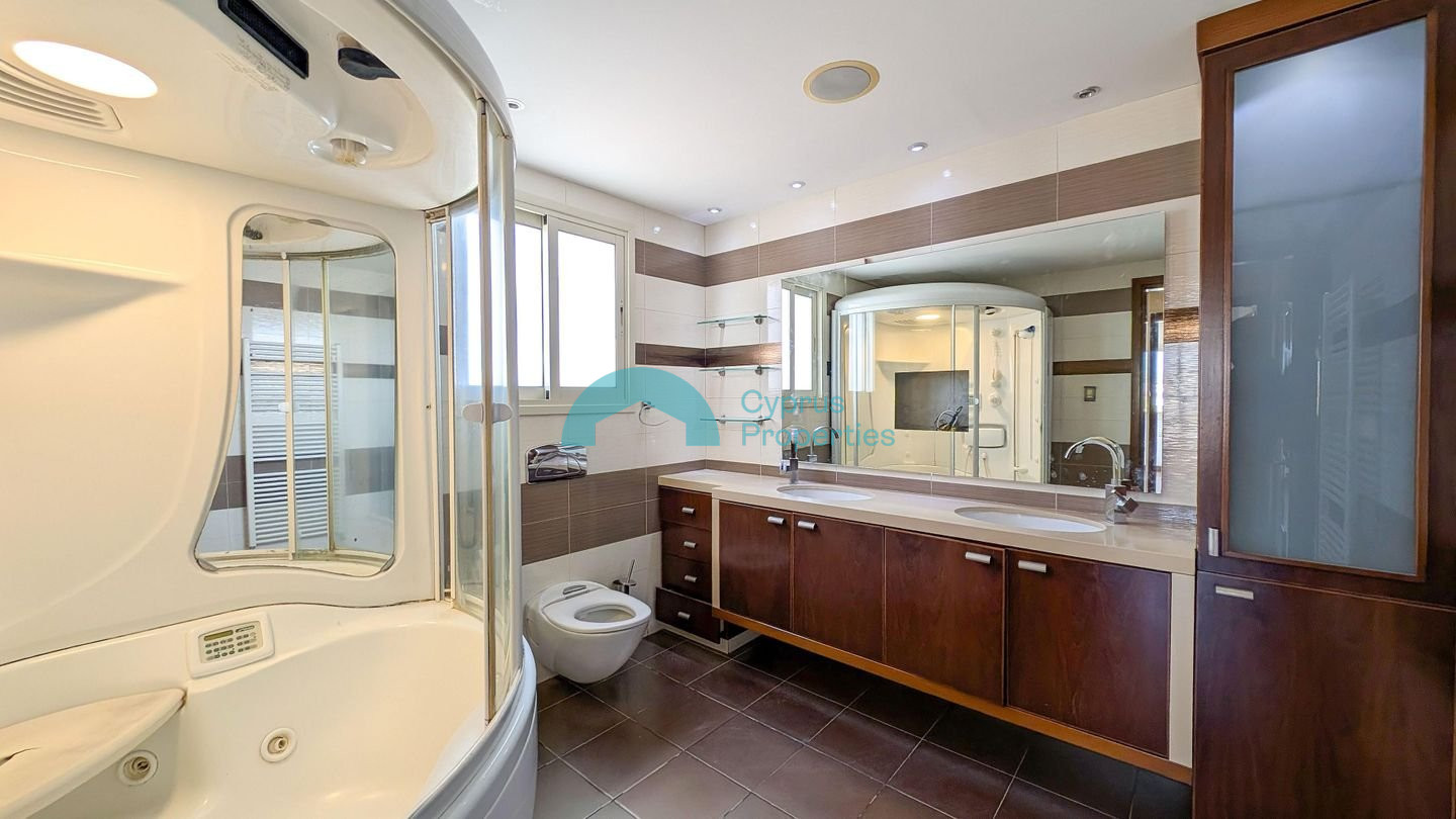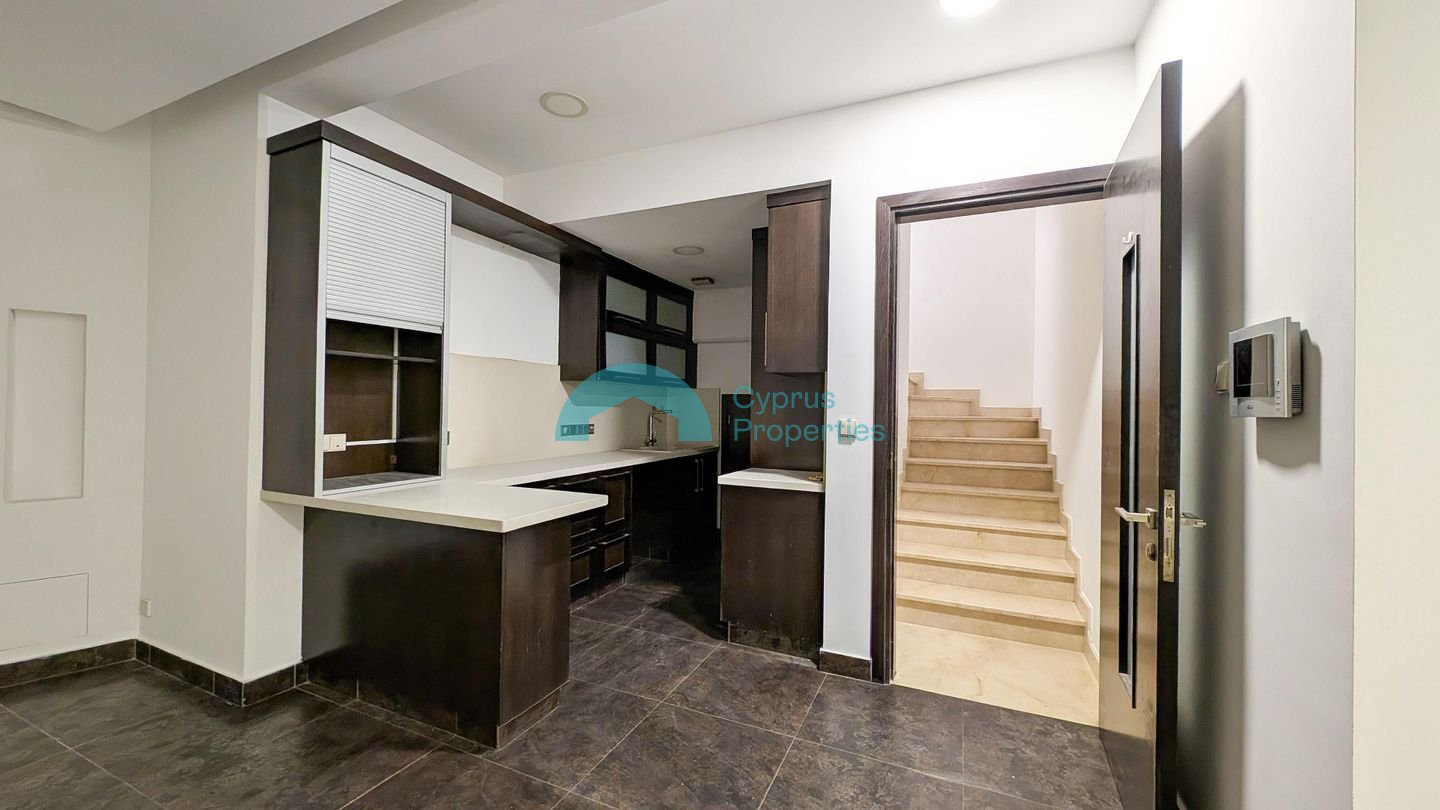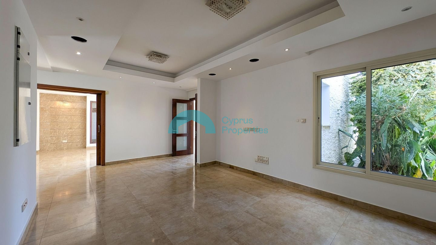 Located in the prestigious area of Agios Athanasios, this spacious residence sits on a 577sq.m. plot with excellent frontage, offering both privacy and convenience. Key Features: • Plot Area: 577sq.m. • Enclosed Area: 292sq.m. • Basement: 96sq.m. • Covered Verandas: 19sq.m. • Covered Parking: 36sq.m. • Swimming Pool: 32sq.m. Internal Layout: • The ground floor features bright open-plan living areas, a fully equipped kitchen with dining space, and a separate sitting area. • The first floor consists of 3 bedrooms with en-suite bathrooms, including a master suite with a walk-in wardrobe and jacuzzi, plus an office (4th bedroom) with an en-suite toilet. • The basement adds extra functionality with a secondary kitchen, storage rooms, a guest WC, and a wine cellar. Exterior: The residence features a landscaped yard with a private swimming pool, BBQ area, verandas, and covered parking. Location: • Approx. 385m north of the Nicosia-Limassol motorway • Approx. 385m southwest of Sfalangiotissas cemetery • Approx. 645m northeast of the Linopetras roundabout There is a separate title deed for this property. Pending issuance of Energy Performance Certificate.