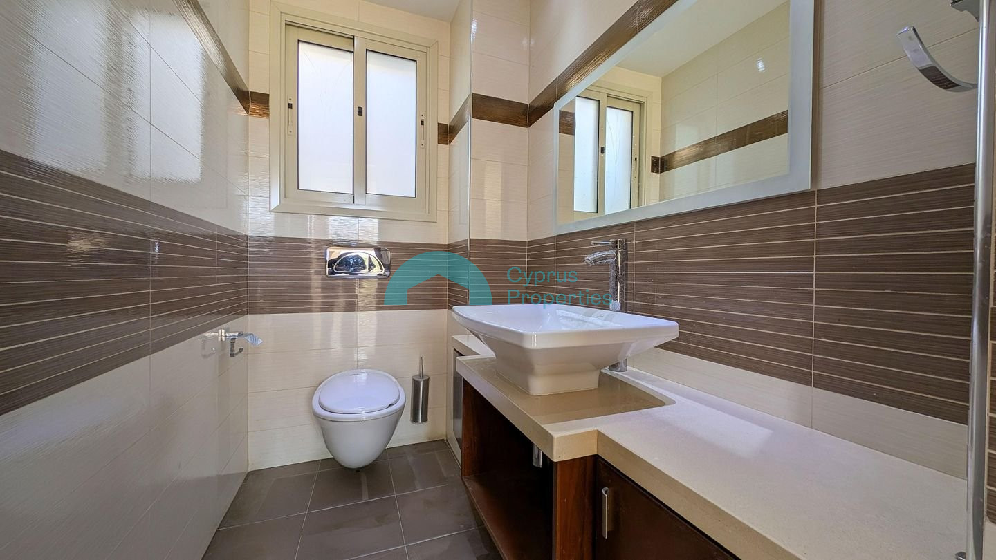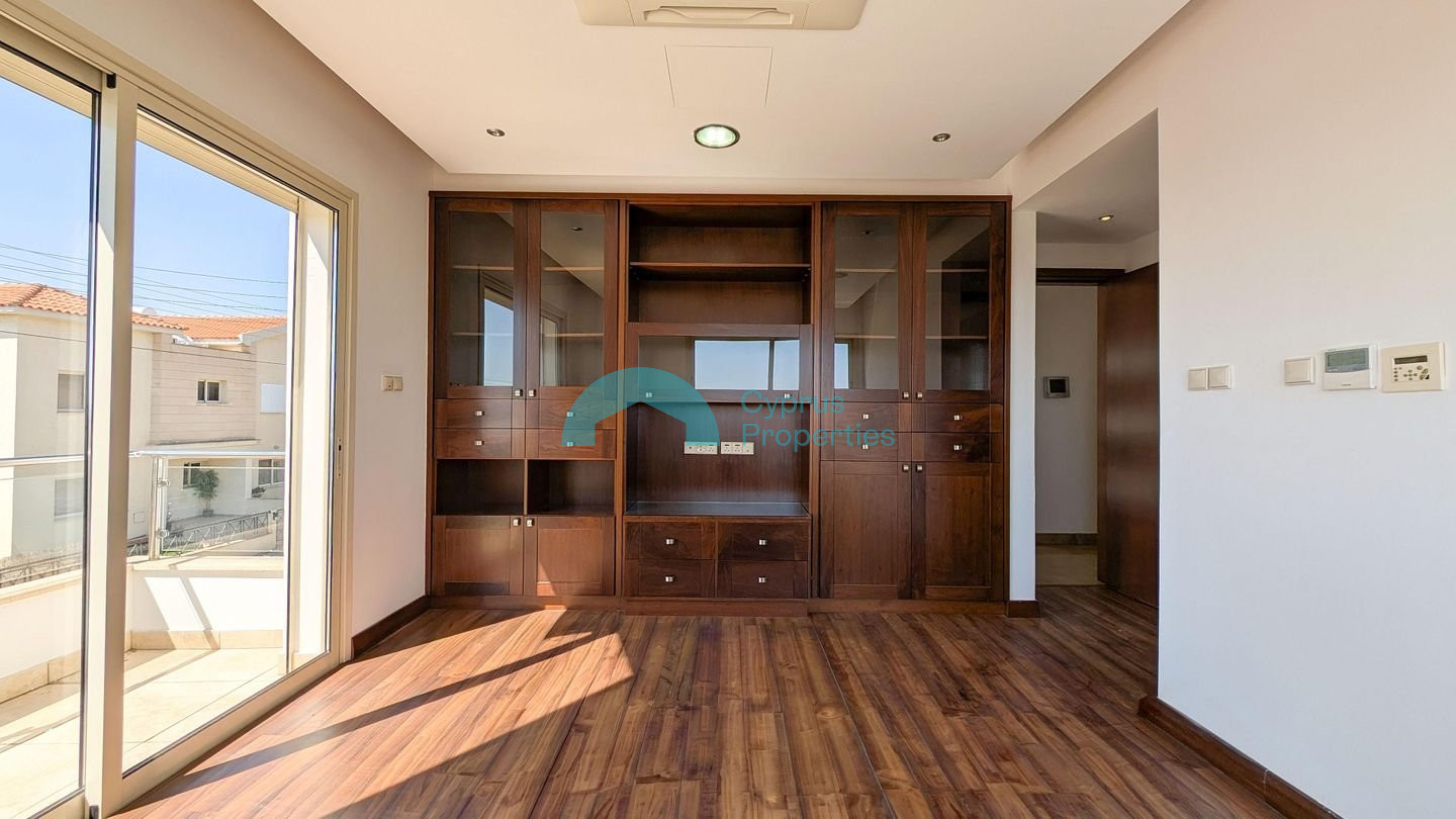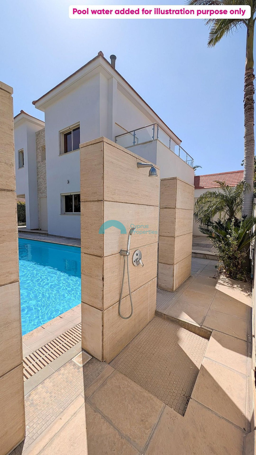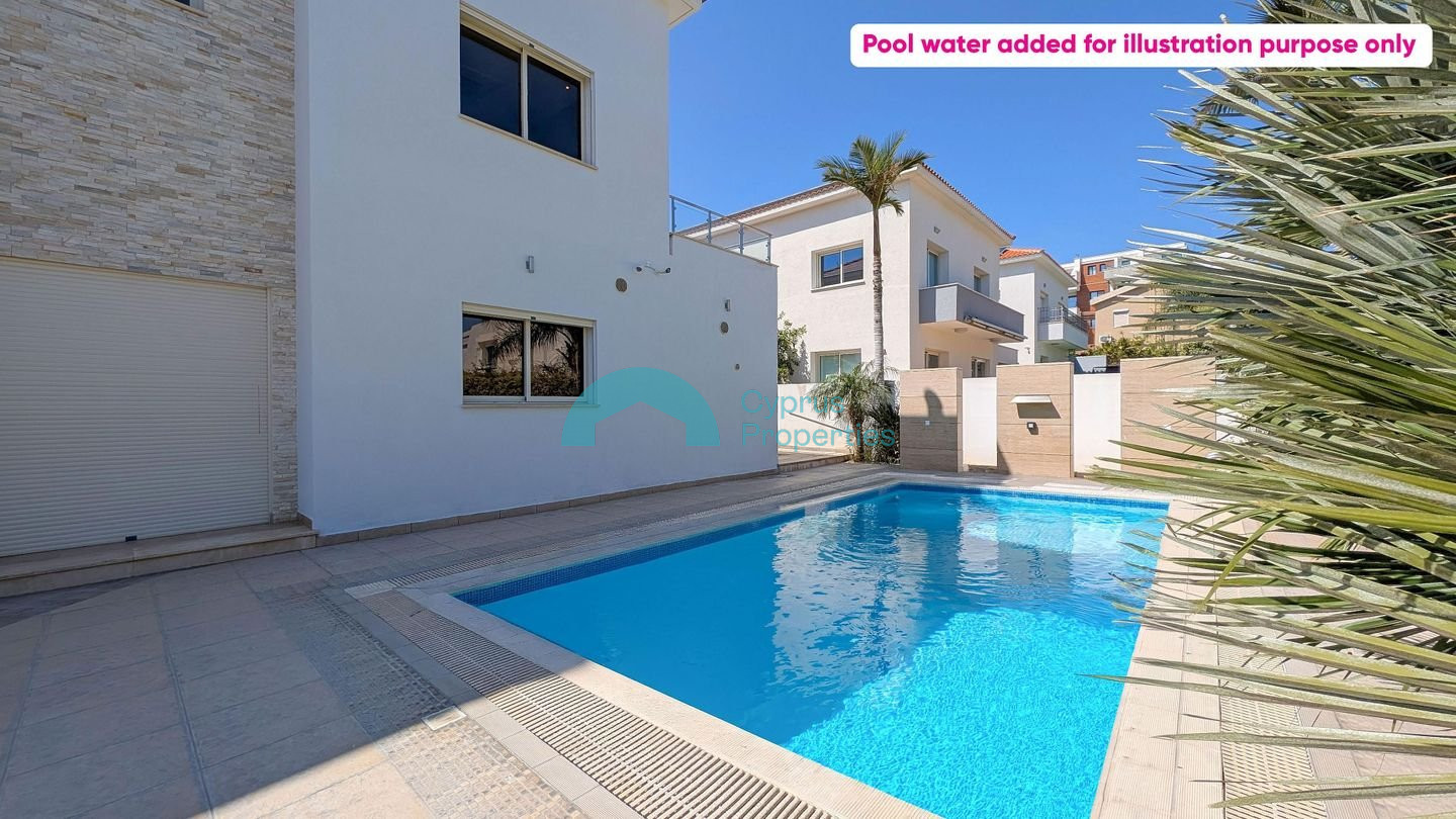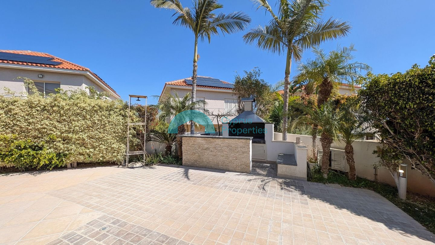 Located in the prestigious area of Agios Athanasios, this spacious residence sits on a 577sq.m. plot with excellent frontage, offering both privacy and convenience. Key Features: • Plot Area: 577sq.m. • Enclosed Area: 292sq.m. • Basement: 96sq.m. • Covered Verandas: 19sq.m. • Covered Parking: 36sq.m. • Swimming Pool: 32sq.m. Internal Layout: • The ground floor features bright open-plan living areas, a fully equipped kitchen with dining space, and a separate sitting area. • The first floor consists of 3 bedrooms with en-suite bathrooms, including a master suite with a walk-in wardrobe and jacuzzi, plus an office (4th bedroom) with an en-suite toilet. • The basement adds extra functionality with a secondary kitchen, storage rooms, a guest WC, and a wine cellar. Exterior: The residence features a landscaped yard with a private swimming pool, BBQ area, verandas, and covered parking. Location: • Approx. 385m north of the Nicosia-Limassol motorway • Approx. 385m southwest of Sfalangiotissas cemetery • Approx. 645m northeast of the Linopetras roundabout There is a separate title deed for this property. Pending issuance of Energy Performance Certificate.