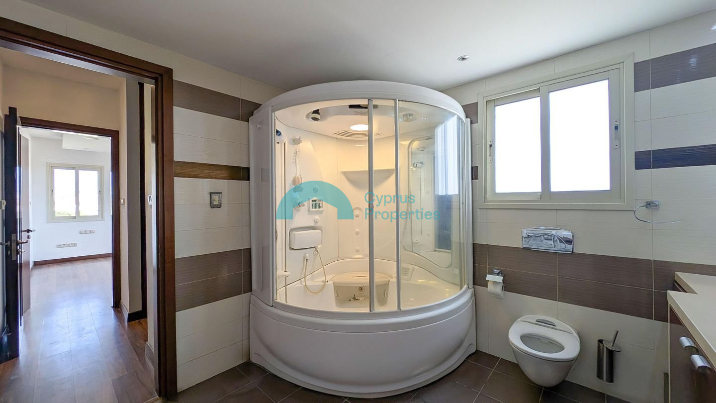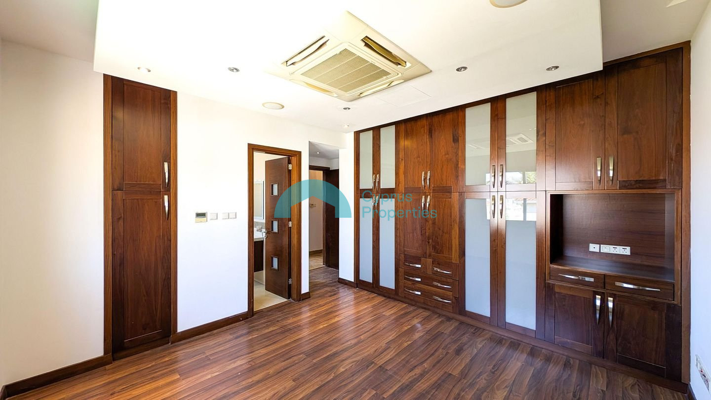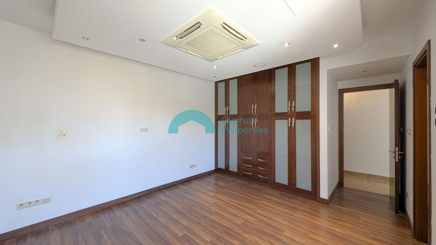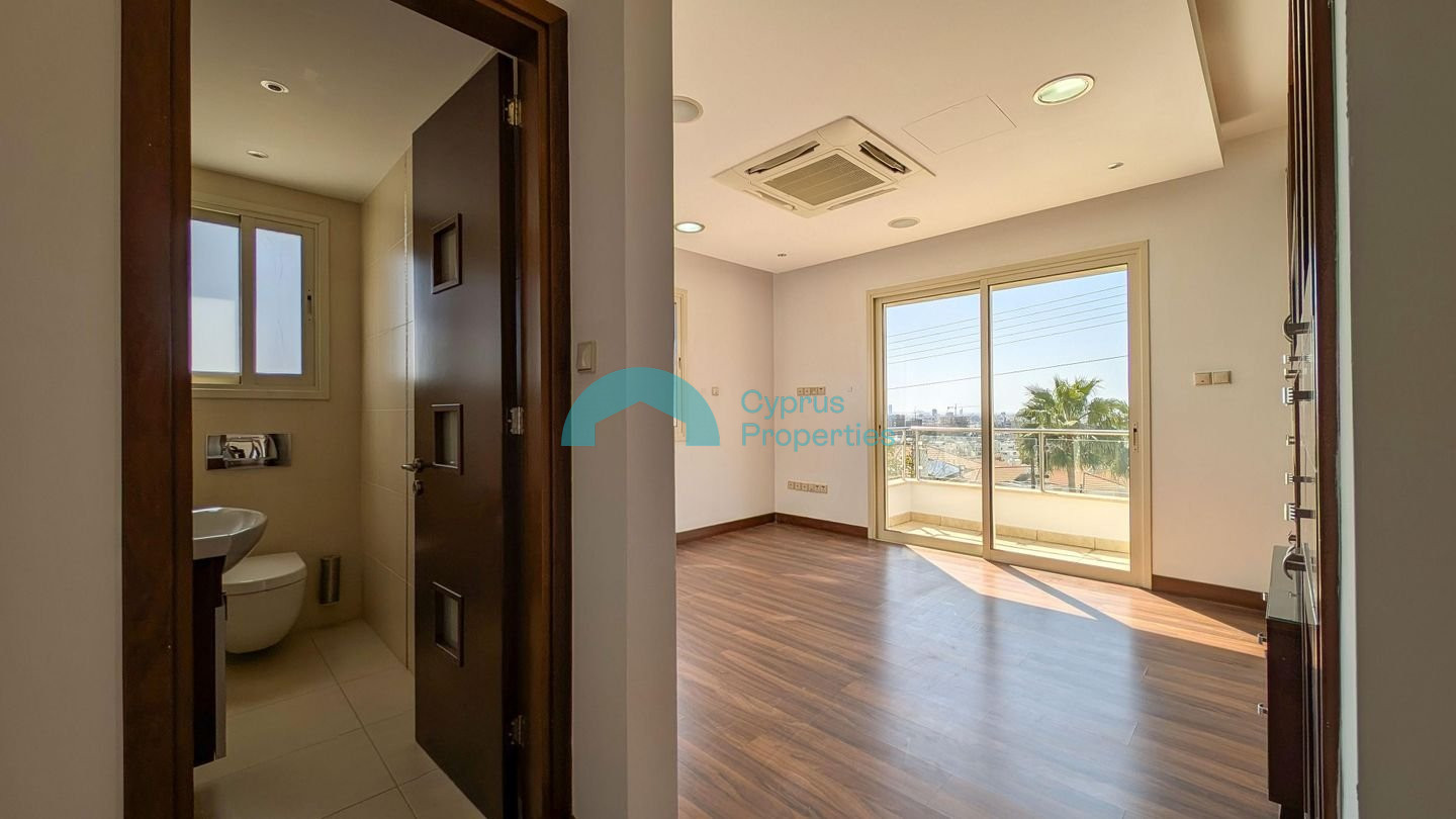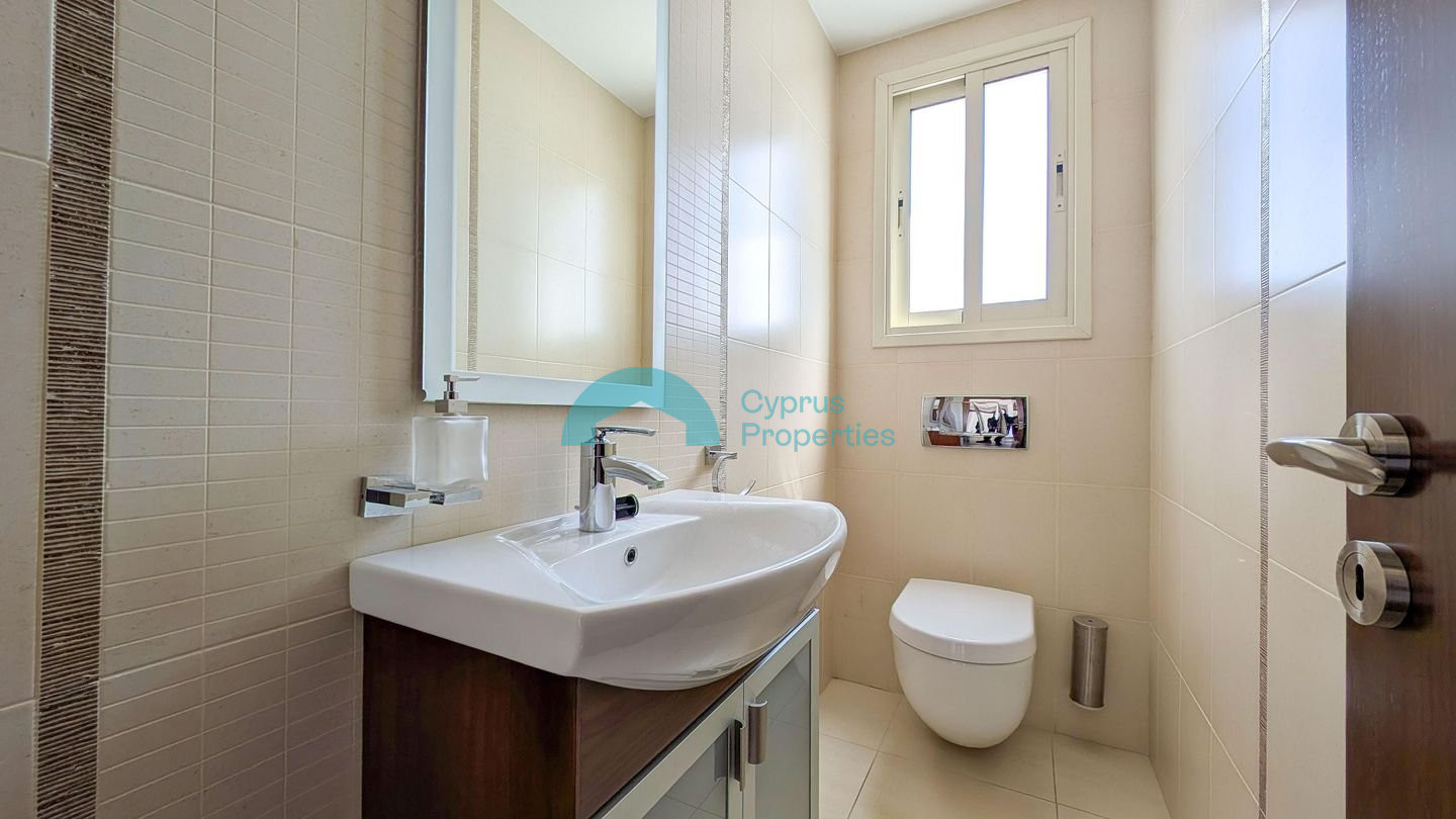 Located in the prestigious area of Agios Athanasios, this spacious residence sits on a 577sq.m. plot with excellent frontage, offering both privacy and convenience. Key Features: • Plot Area: 577sq.m. • Enclosed Area: 292sq.m. • Basement: 96sq.m. • Covered Verandas: 19sq.m. • Covered Parking: 36sq.m. • Swimming Pool: 32sq.m. Internal Layout: • The ground floor features bright open-plan living areas, a fully equipped kitchen with dining space, and a separate sitting area. • The first floor consists of 3 bedrooms with en-suite bathrooms, including a master suite with a walk-in wardrobe and jacuzzi, plus an office (4th bedroom) with an en-suite toilet. • The basement adds extra functionality with a secondary kitchen, storage rooms, a guest WC, and a wine cellar. Exterior: The residence features a landscaped yard with a private swimming pool, BBQ area, verandas, and covered parking. Location: • Approx. 385m north of the Nicosia-Limassol motorway • Approx. 385m southwest of Sfalangiotissas cemetery • Approx. 645m northeast of the Linopetras roundabout There is a separate title deed for this property. Pending issuance of Energy Performance Certificate.