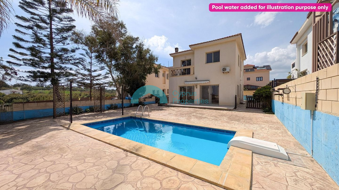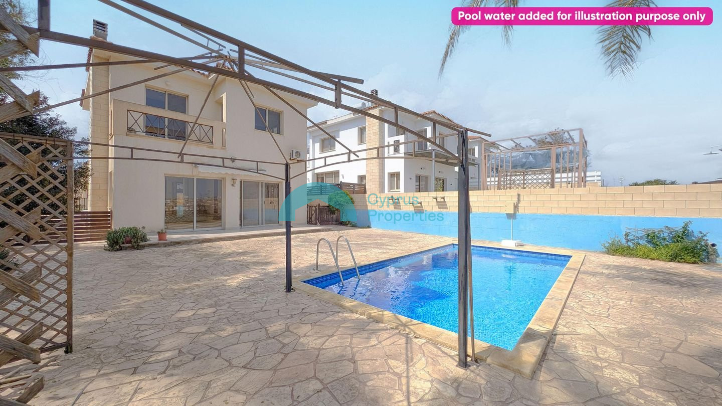 Located in a quiet residential complex in Ormidia, this well-maintained two-storey detached house offers comfort, privacy, and excellent accessibility—just minutes from the Larnaca–Ayia Napa motorway and close to local amenities. Property Highlights: • Plot: 354sq.m. • Enclosed Area: 153sq.m. • Yard: 219sq.m. • Bedrooms: 3 • Swimming Pool: 24sq.m. • Uncovered Verandas: 29sq.m. Internal Layout: The home features a bright open-plan kitchen, living, and dining area with a fireplace, along with a guest WC on the ground floor. Upstairs, there are three bedrooms, including a master with en-suite shower, a main bathroom, and verandas. Exterior: The property enjoys a private yard, swimming pool, and uncovered parking. Location: • Approx. 480m northeast of the Larnaca–Ayia Napa motorway • Approx. 375m southwest of Ormidia's Primary School A great opportunity to own a comfortable home in a peaceful yet well-connected location There is a separate title deed for this property. Pending issuance of Energy Performance Certificate.