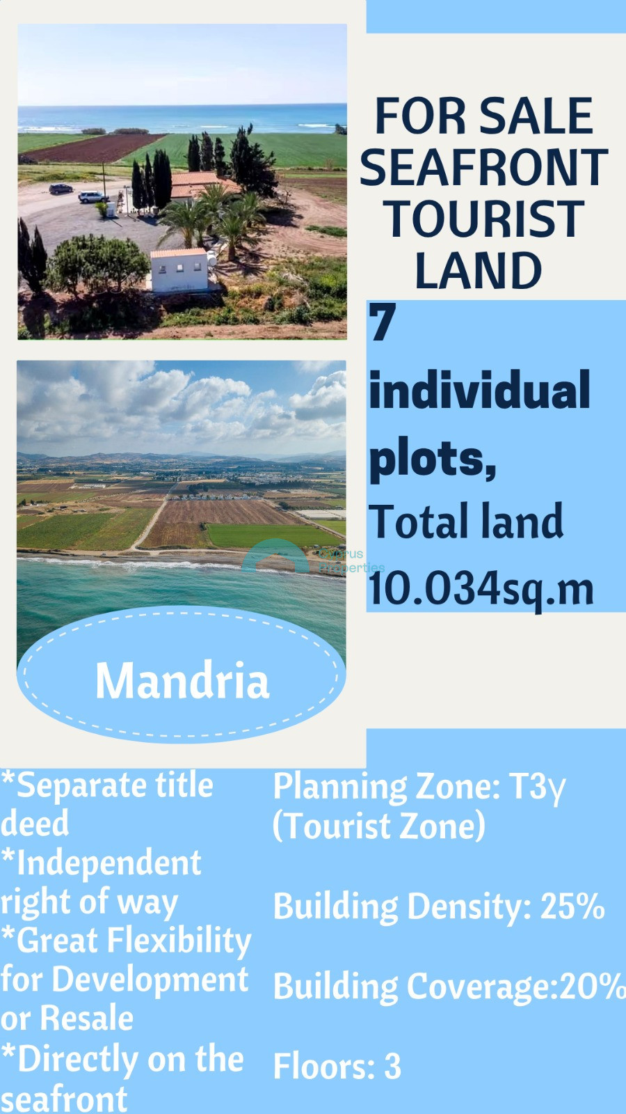 investment opportunity: a seafront tourist land for sale in the beautiful and rapidly developing village of Mandria, Paphos.