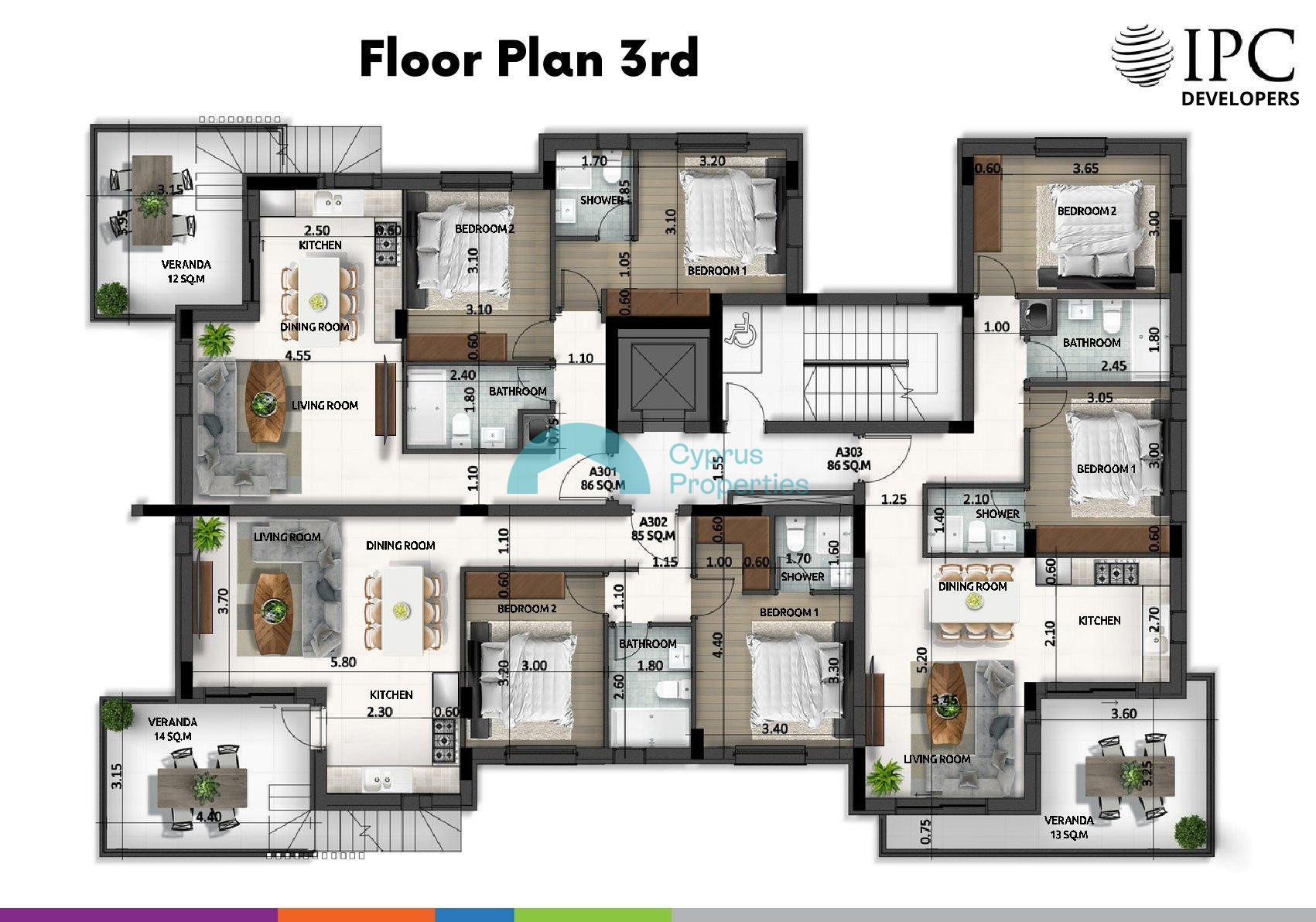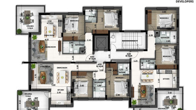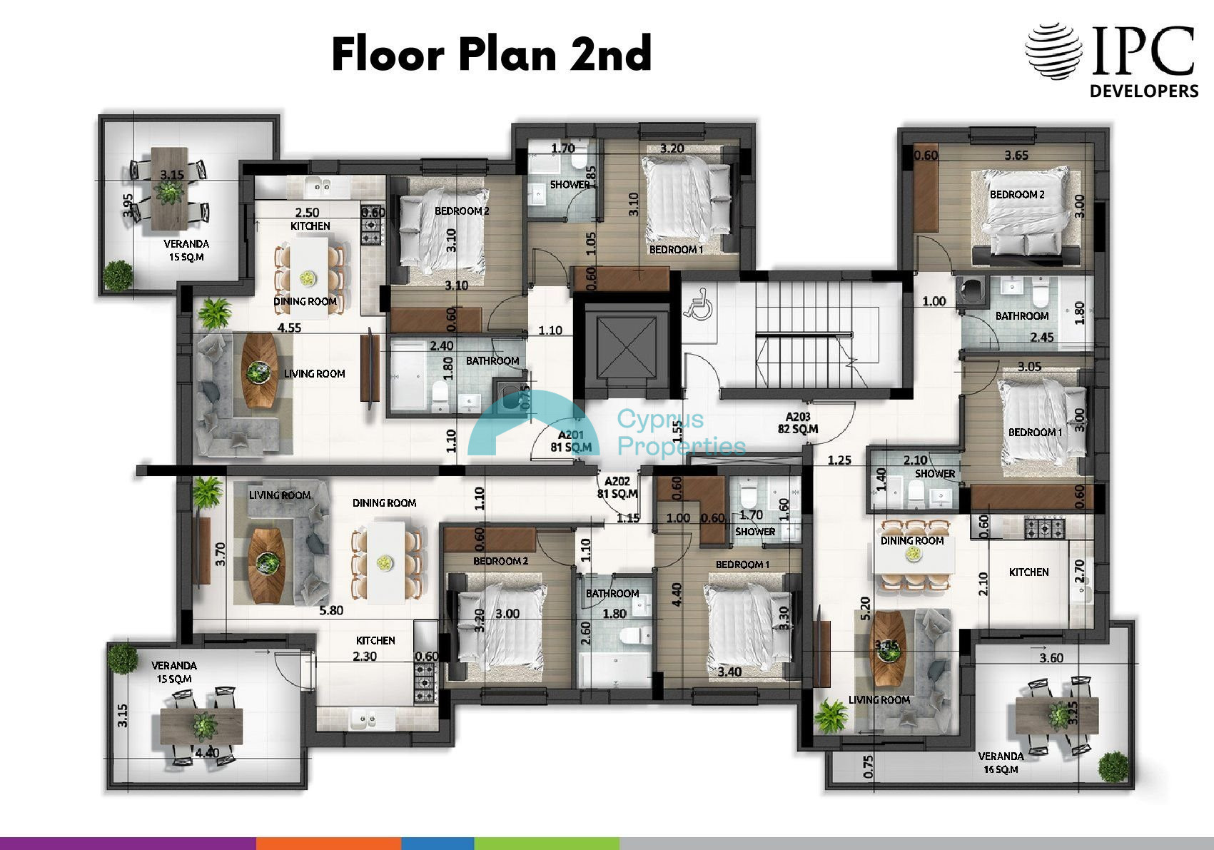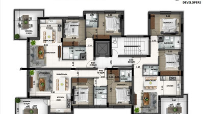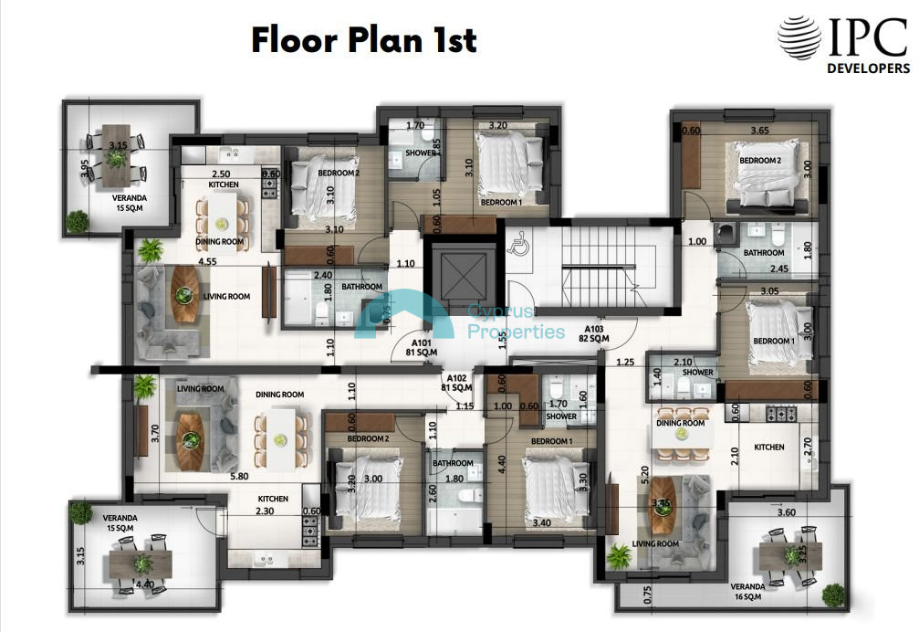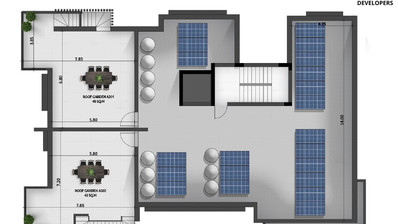 For sale is a modern top-floor apartment currently under construction in the sought-after area of Larnaca - Agios Nikolaos. Offering a comfortable internal space of 82 m2, this home features two well-sized bedrooms and two stylish bathrooms, ideal for couples or small families.