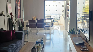 The flat consists of an open plan living-dining area, one covered veranda, one kitchen, one bathroom and two bedrooms.
